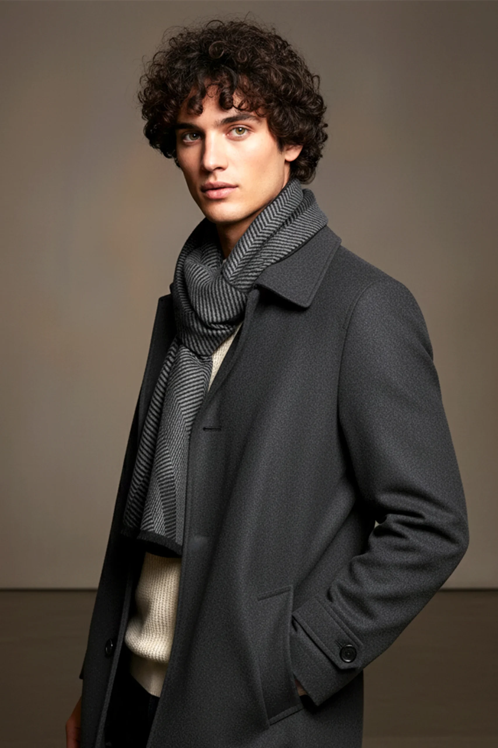 Écharpe pour homme en 70 % viscose et 30% Polyester, confectionnée dans une maille effet mohair d’une douceur exceptionnelle. Avec sa texture souple et légère, elle offre un confort incomparable et un tombé élégant. Dimensions : 180 cm de longueur et 34 cm de largeur — idéale pour être portée en simple tour ou nouée avec élégance sur un manteau ou un col roulé.