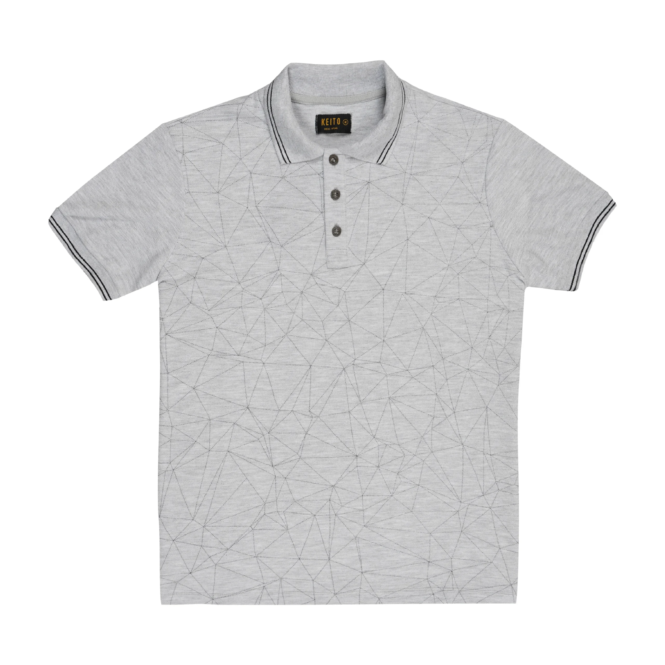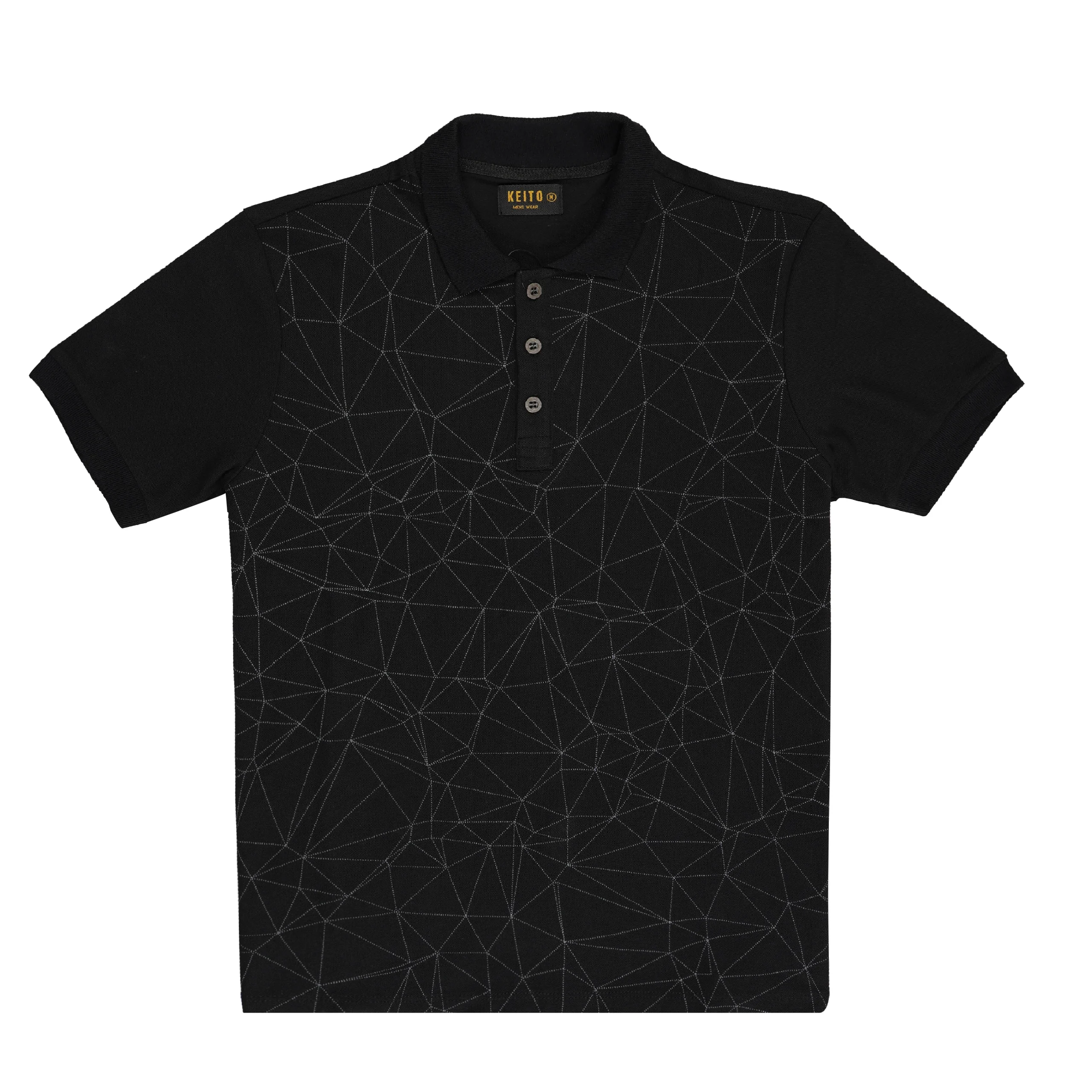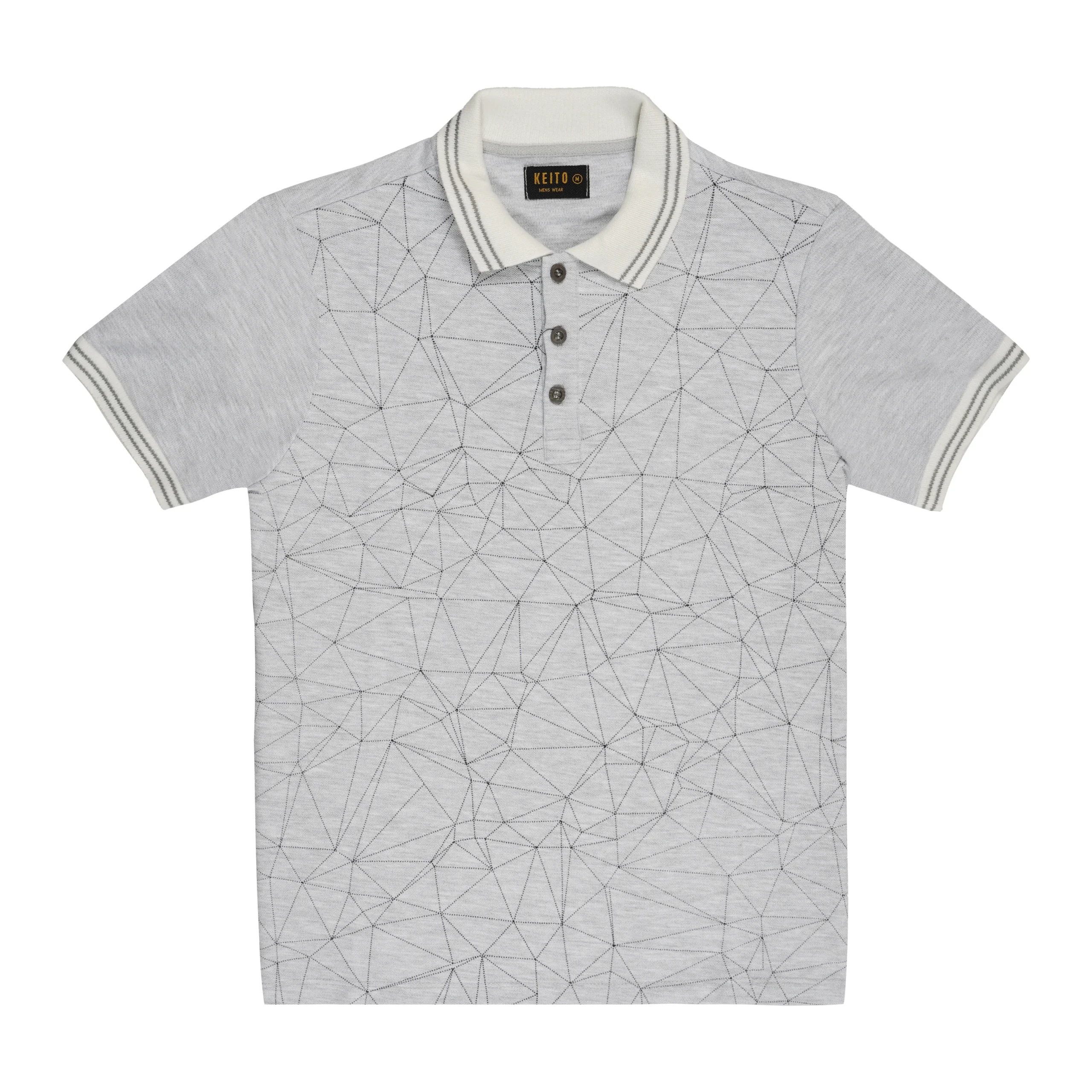 Polo manche courte en tissu mélange de coton, avec une patte polo, avec une impression all over sur le devant