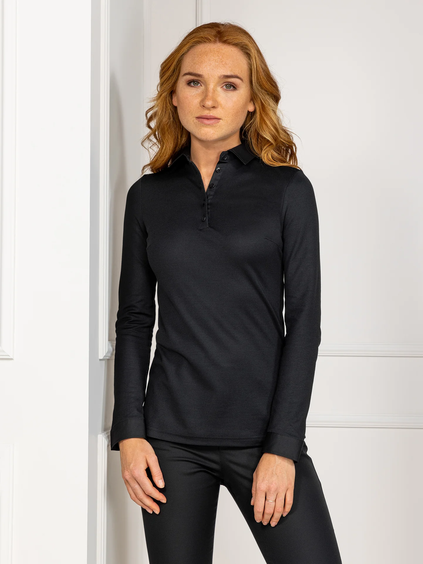 Longsleeve Polo Alice is a modern interpretation of the classic polo shirt, especially created for waitresses. By using woven fabric for the cuffs and collar, this shirt is both sporty and classic at the same time. The high quality polo-piqué is made from Bio-cotton and recycled PET bottles.