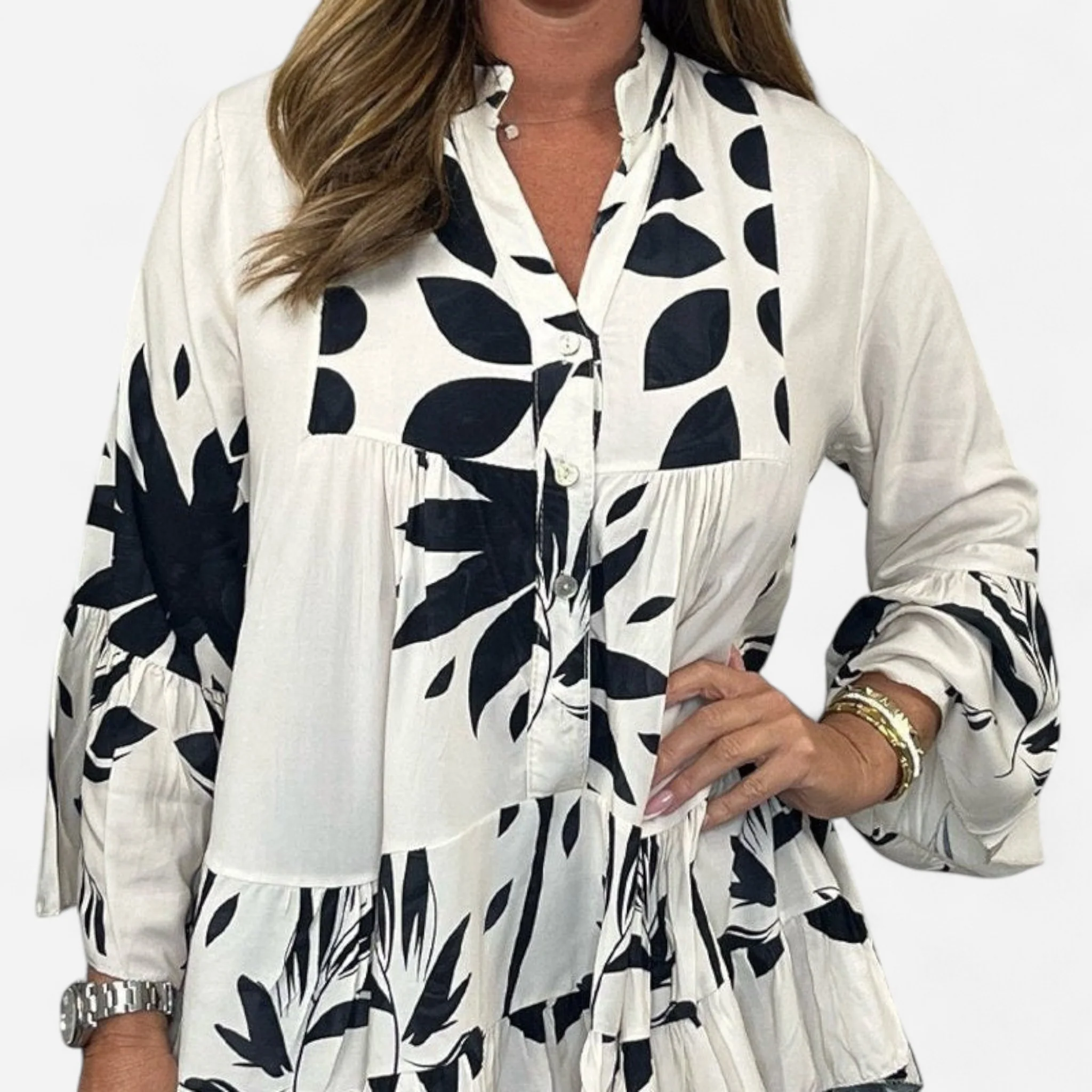 Cette blouse s’inscrit parfaitement dans les tendances actuelles, idéales pour le printemps et l’été. Son style décontracté et élégant en fait un choix parfait pour les journées ensoleillées ou les soirées décontractées. Ajoutez cette pièce versatile à votre garde-robe et profitez d’un look à la fois tendance et confortable.
