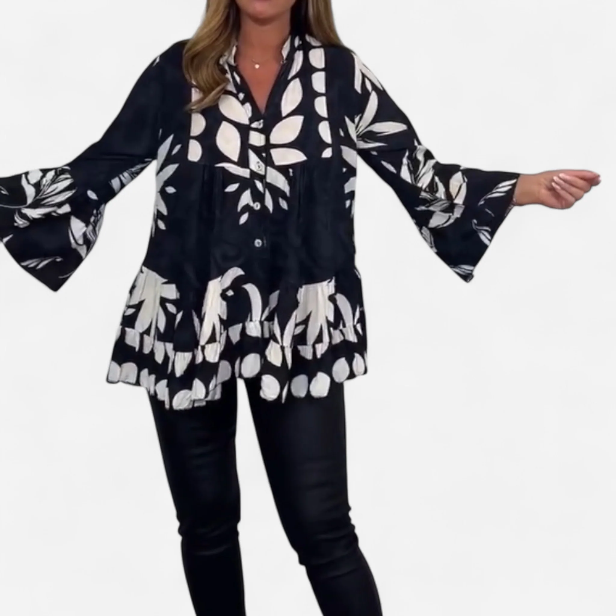 Alix – Blouse Élégante à Manches Évasées et Col V Chic