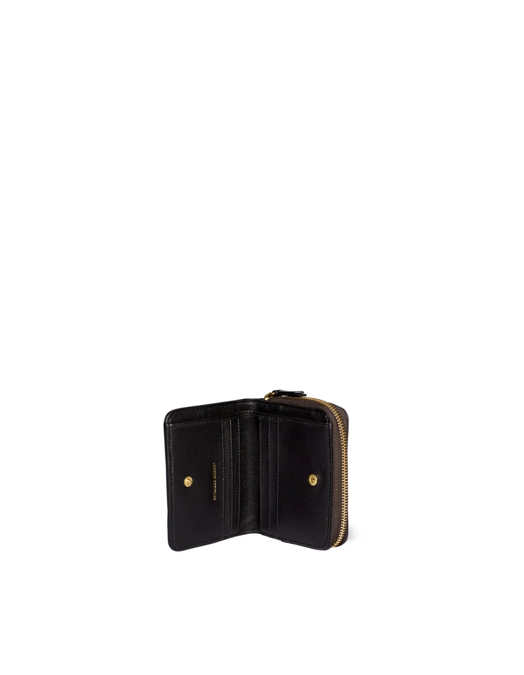 Portefeuille. Fermeture entièrement zippée. Compartiments monnaie avec une fermeture zippée adossé d’un rangement pour les cartes fermé à l’aide d’une pression. Portefeuille 50% Chèvre 50% Agneau / Doublure 100% Coton Dimensions : 11,5 x 9 x 3 cm