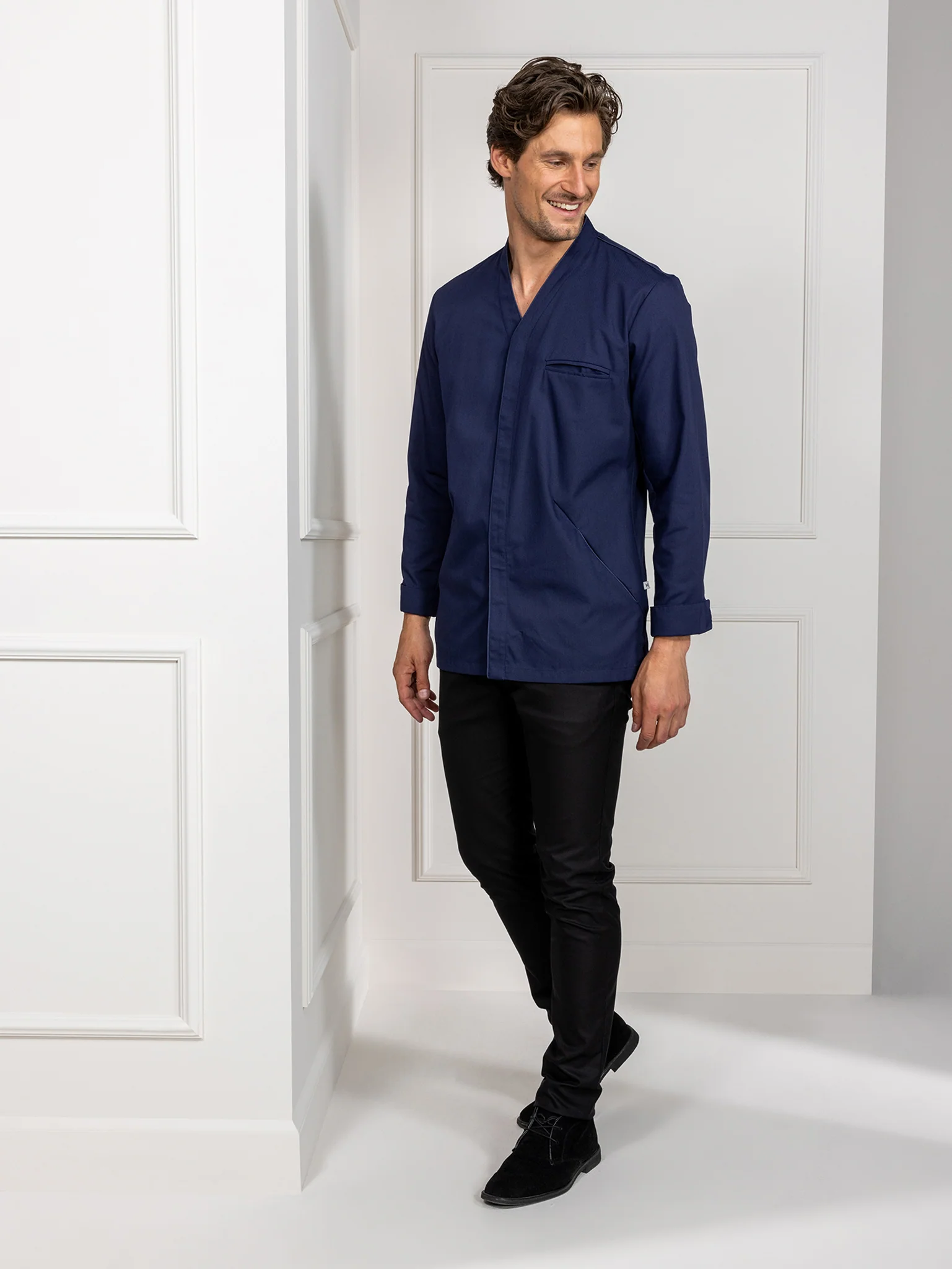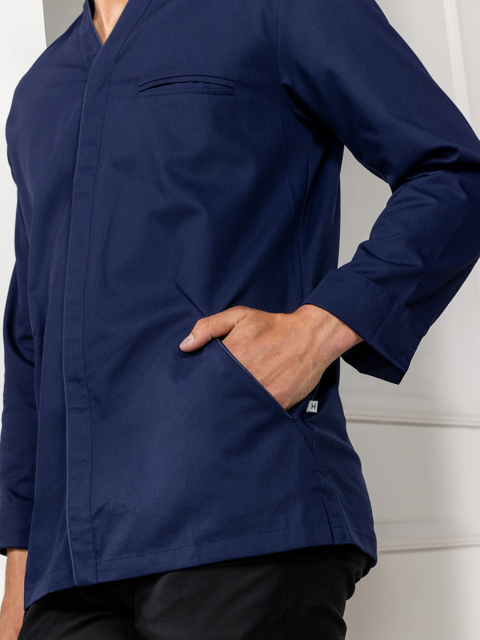 Made from luxurious herringbone fabric, this Asian style chef jacket with v-neck and side pockets meets the highest standard in chef fashion. By using stretch fabric on the back of the chef jacket, Andreas fits perfectly.