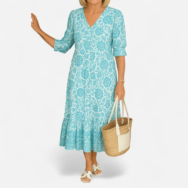 Ava – Robe d’été élégante à col en V pour femmes, légère et chic