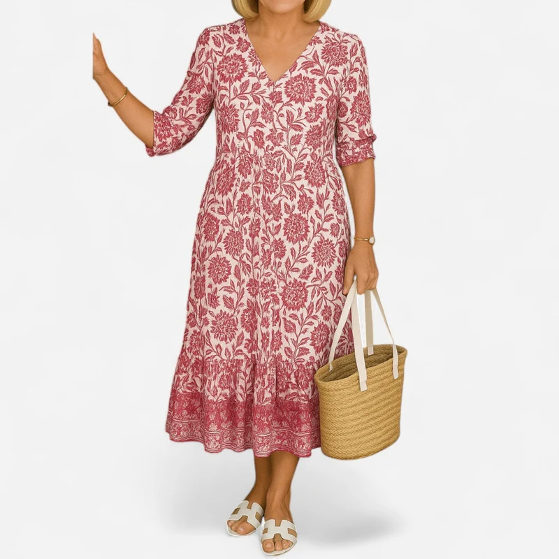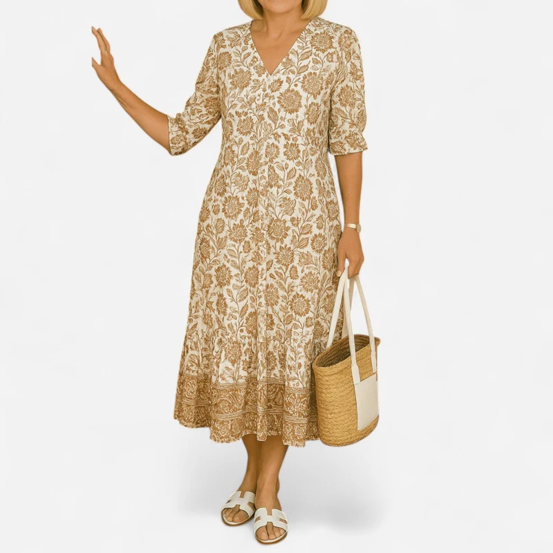 Annika – Élégante robe à fleurs avec décolleté en V pour femmes