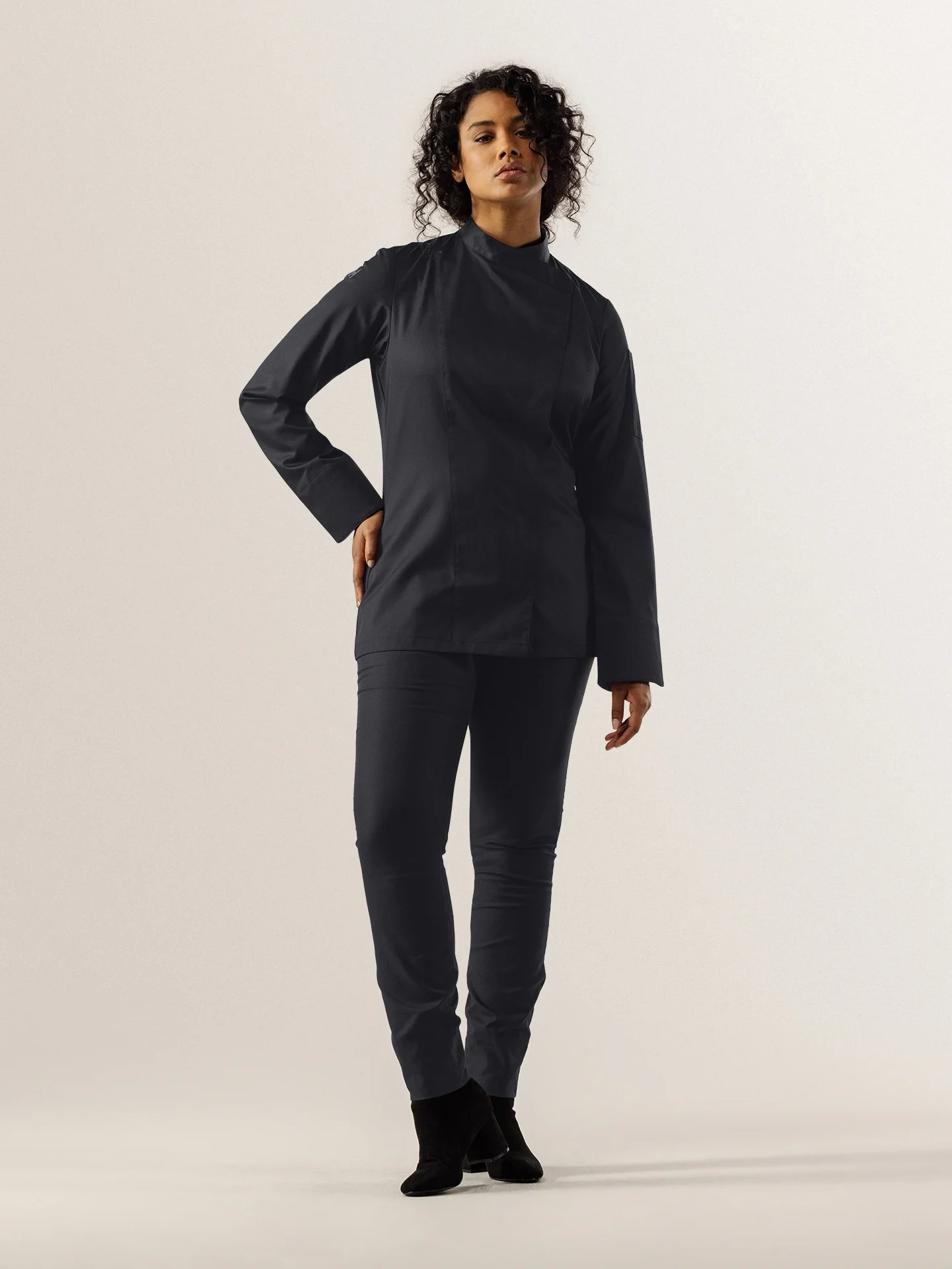 Chef Jacket Arlette offers a simplified design based on a classic chef jacket. Specially tailored for line chefs, this chef jacket is crafted from our most wear-resistant fabric, designed to withstand the wear and tear of daily kitchen use. Available in larger quantities and suitable for industrial laundry cycles.This is a simplified version of our Chef Jacket Lynn, featuring a crossover closure and a stitched pen pocket.
