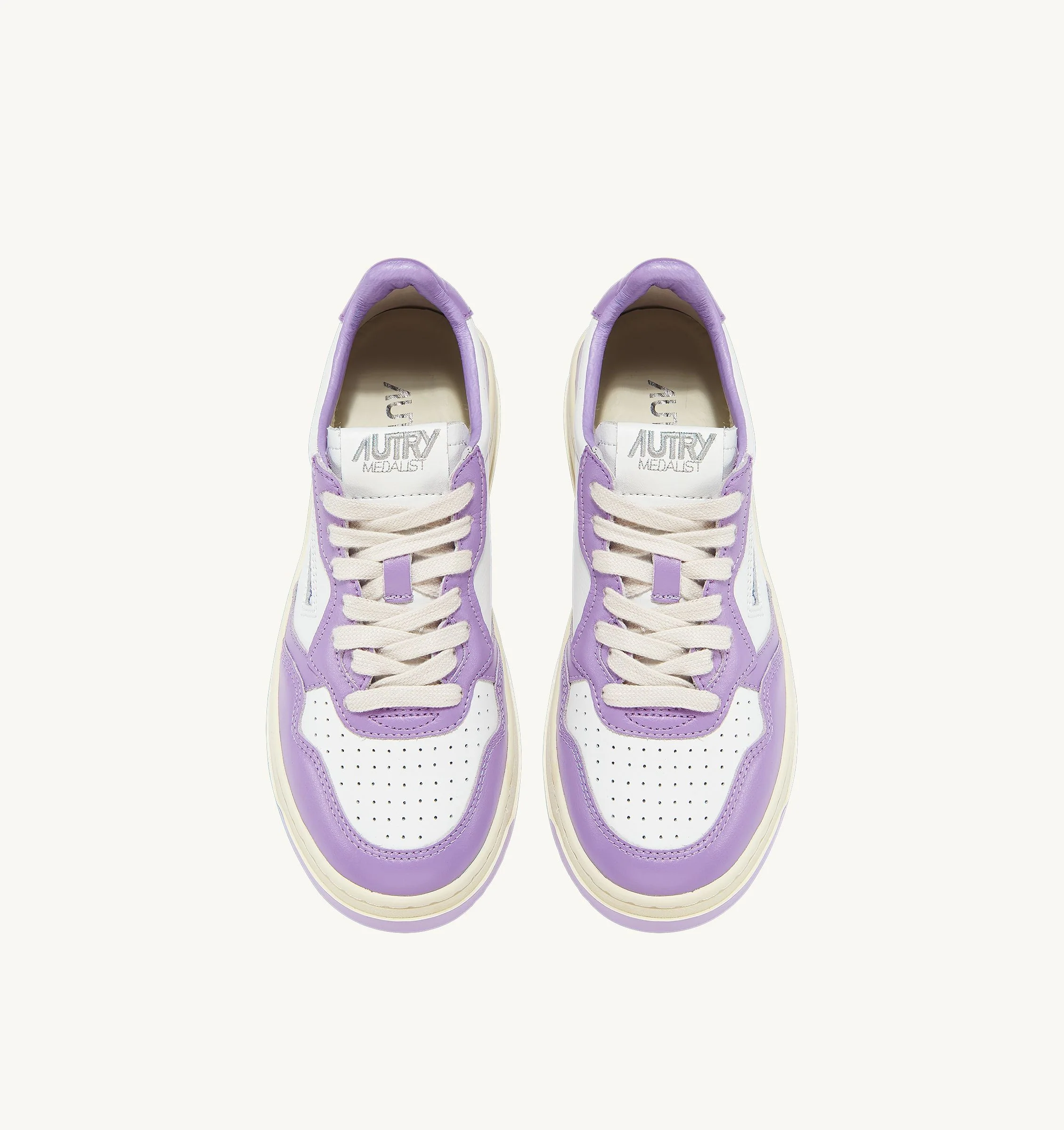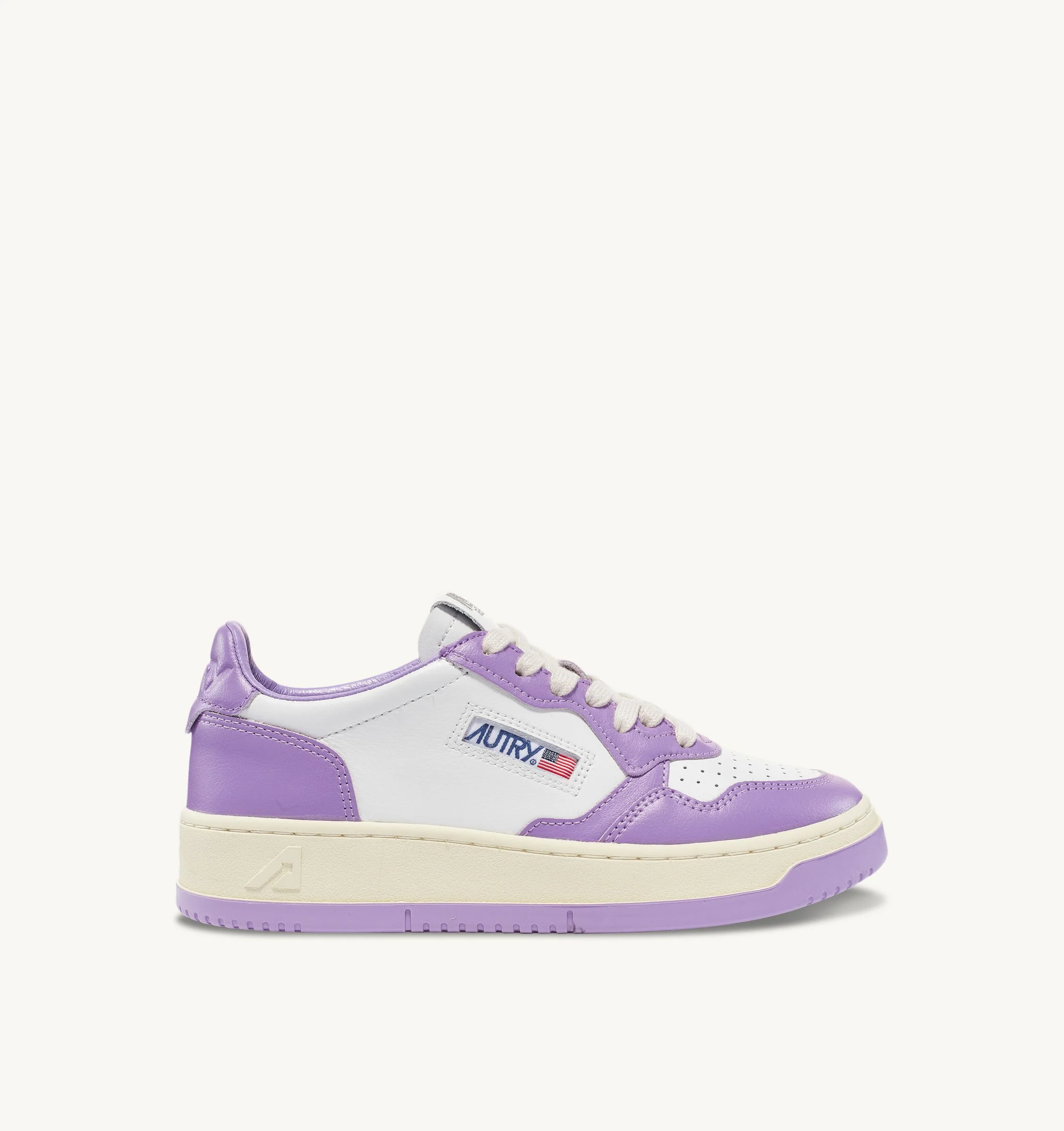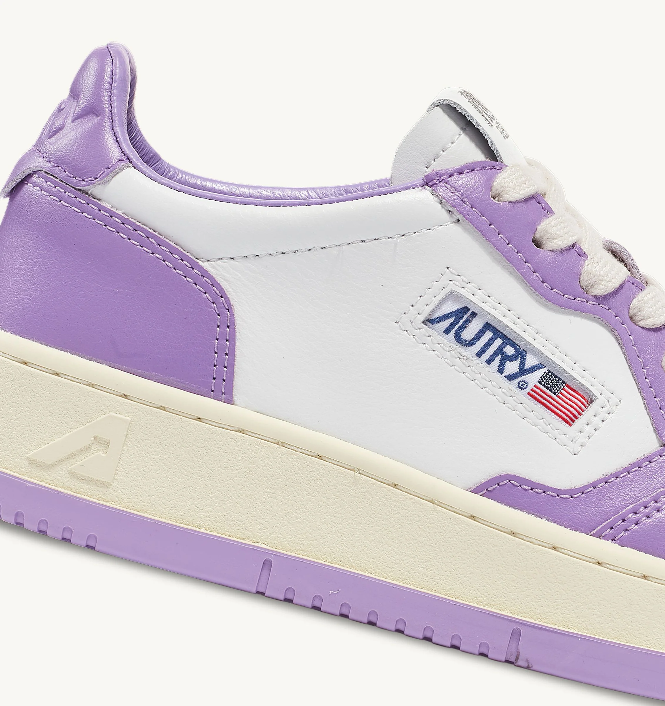 Un style intemporel: Autry Medalist est la chaussure inspirée des modèles vintage des années quatre-vingt, réinterprétée dans une tonalité contemporaine. Un design incomparable rendu unique par la tige en cuir blanc et lavande et logo iconique imprimé sur le petit talon derrière lavande.