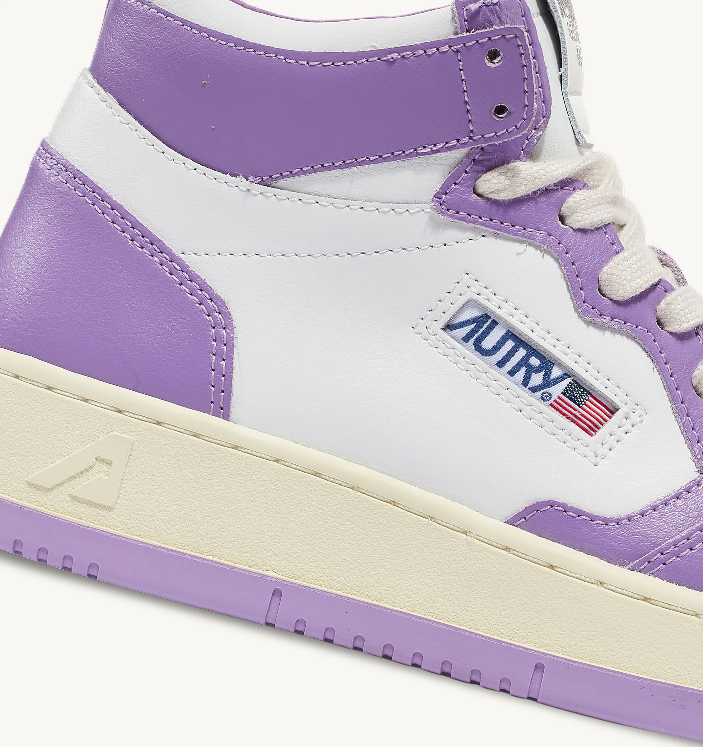 Un style intemporel: Autry Medalist est la chaussure inspirée des modèles vintage des années quatre-vingt, réinterprétée dans une tonalité contemporaine. Un design incomparable rendu unique par la tige en cuir bicolor blanc et lavande.