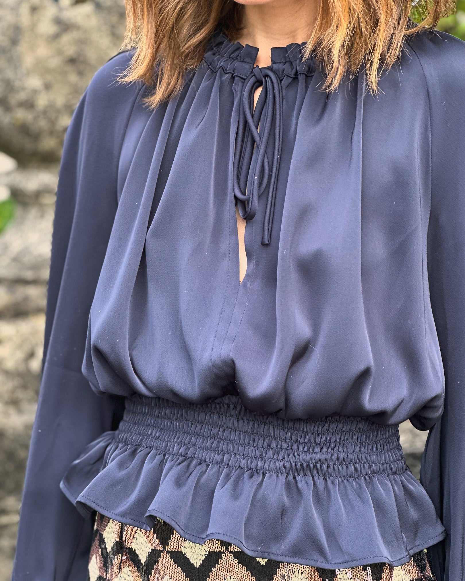 Alix – Blouse Élégante à Manches Évasées et Col V Chic