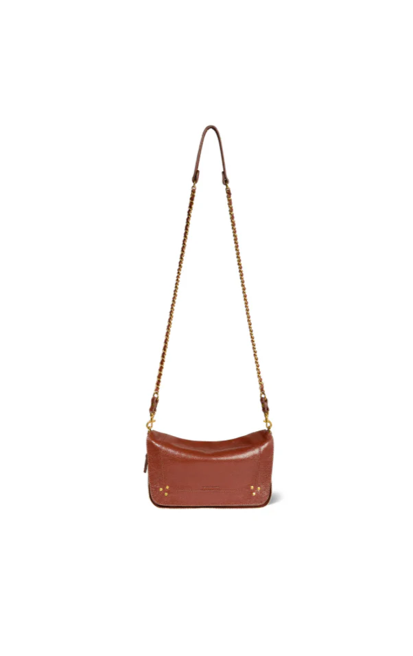 Une bandoulière amovible en chaîne tressée de cuir mesurant 105 cm. Fermeture par un rabat en cuir aimanté. Sac organisé en un grand compartiment. Un miroir et un lien porte-clés à l’intérieur du sac. Peut être associé à toutes nos bandoulières et anses