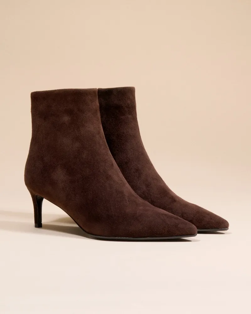 Bottines à Talon et bout pointu Noura Low Chocolate Suede