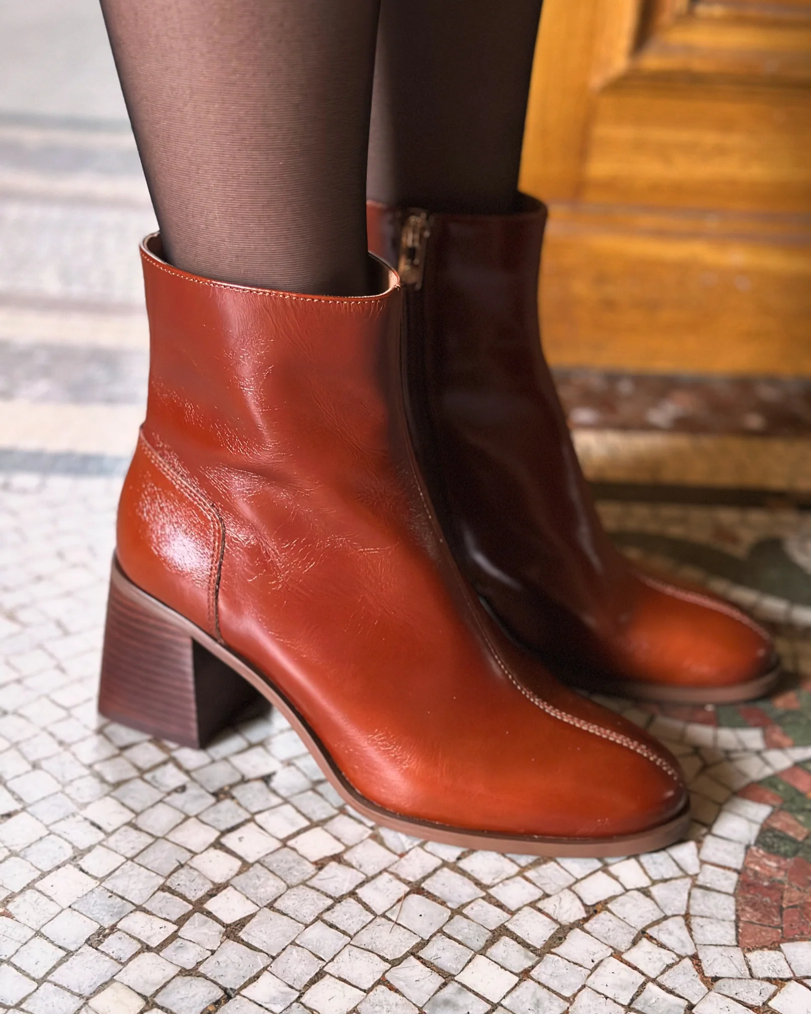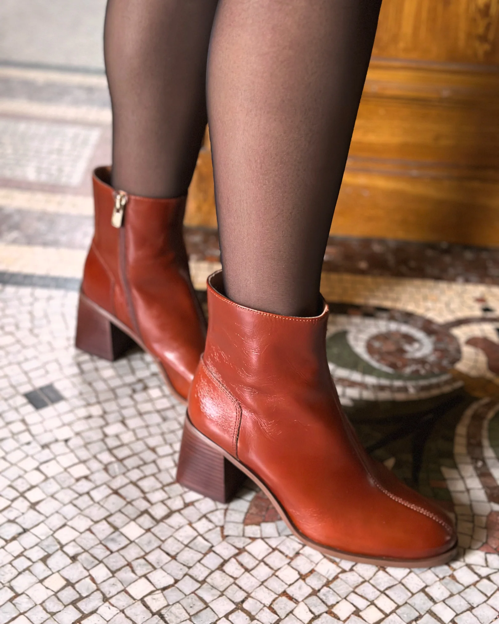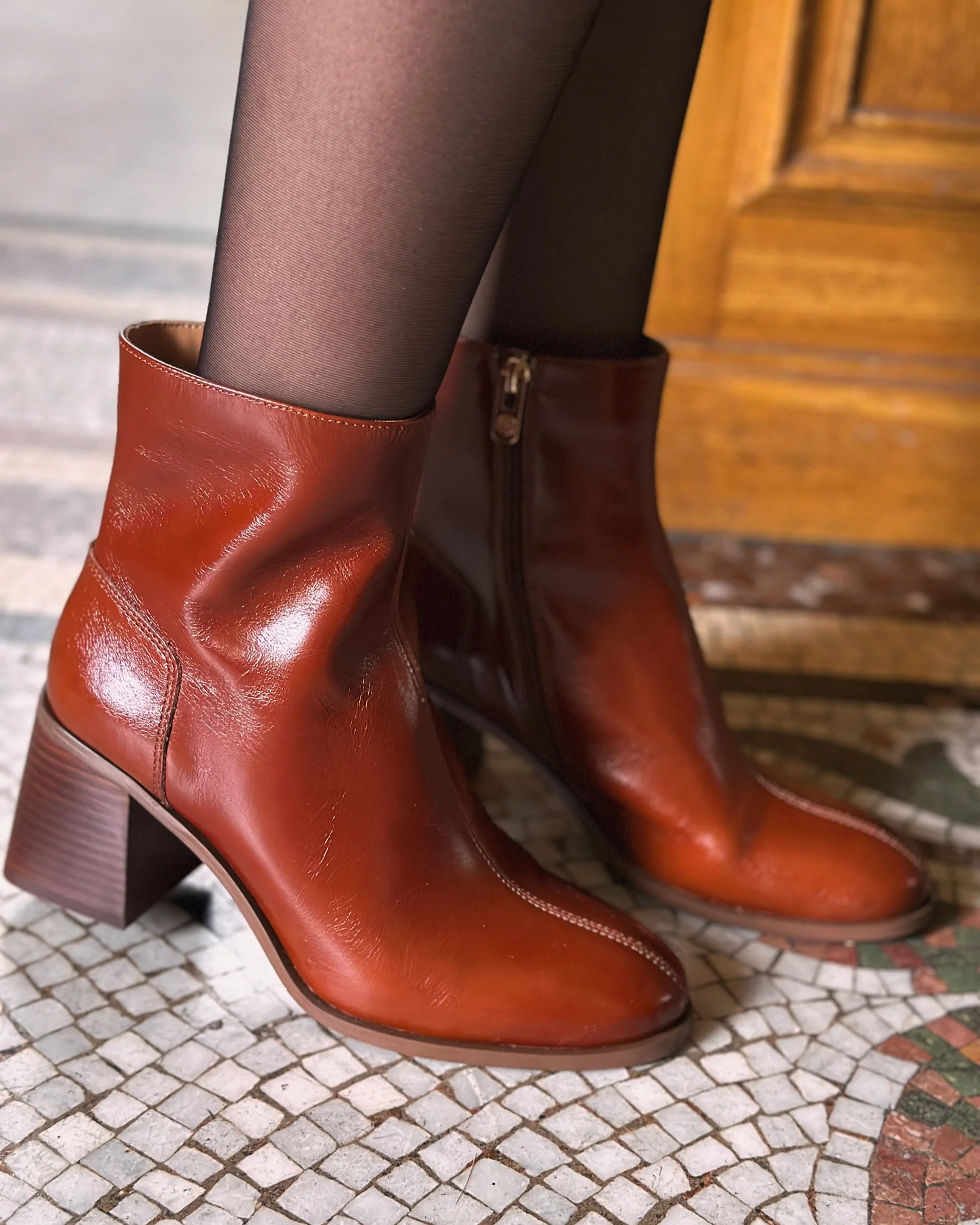 - Bottine en cuir lisse à talon très confortable