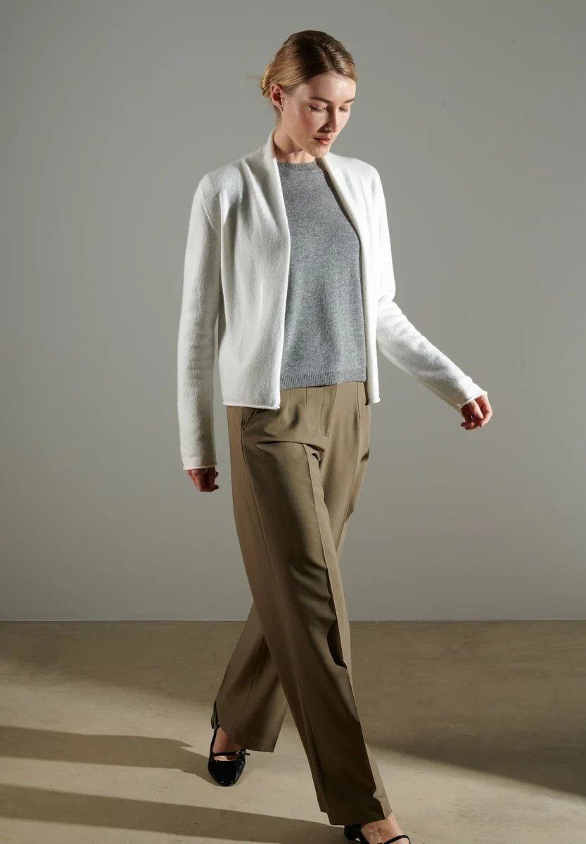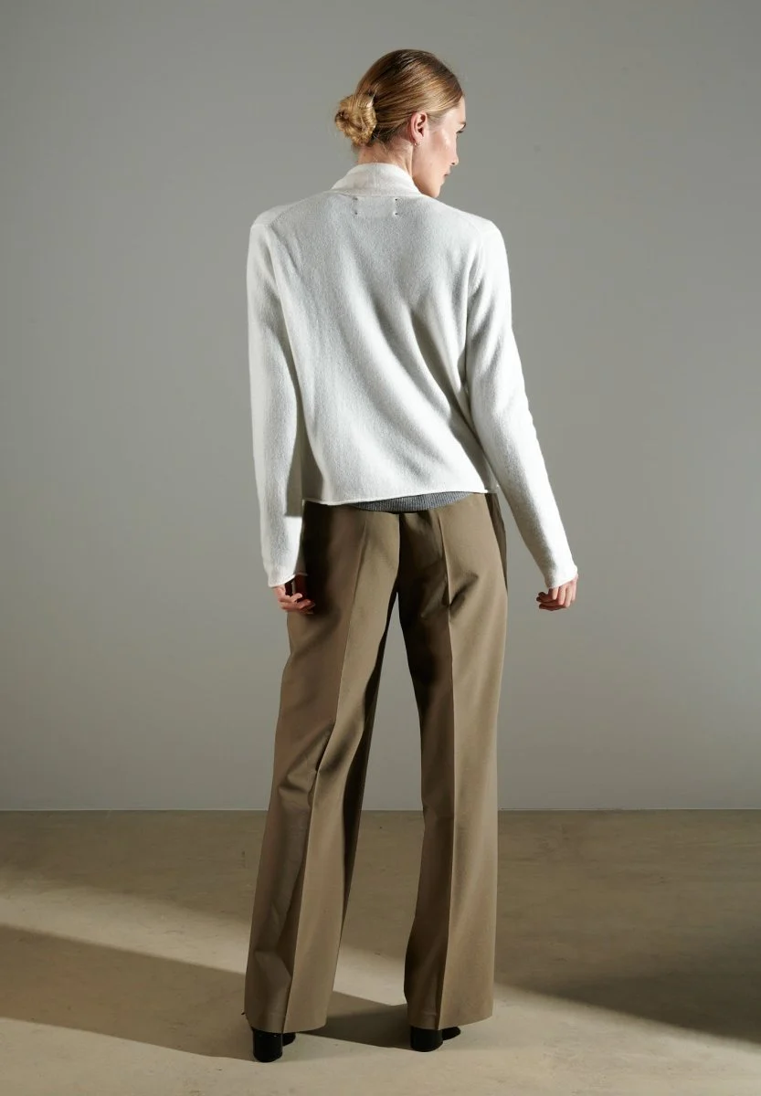 Cardigan col châle femme en cachemire blanc écru – NAMI 2