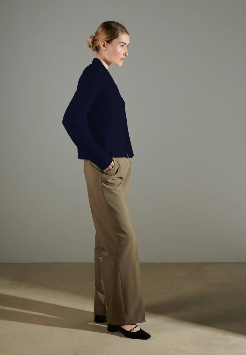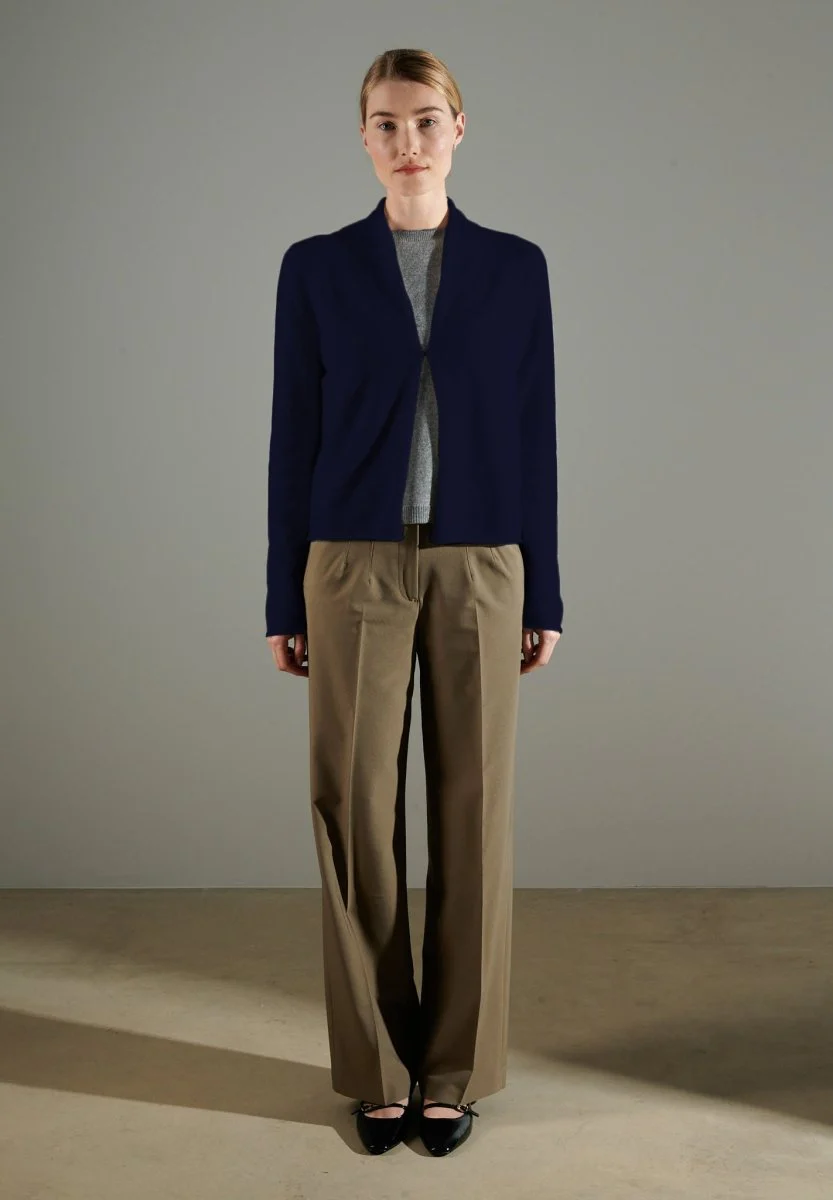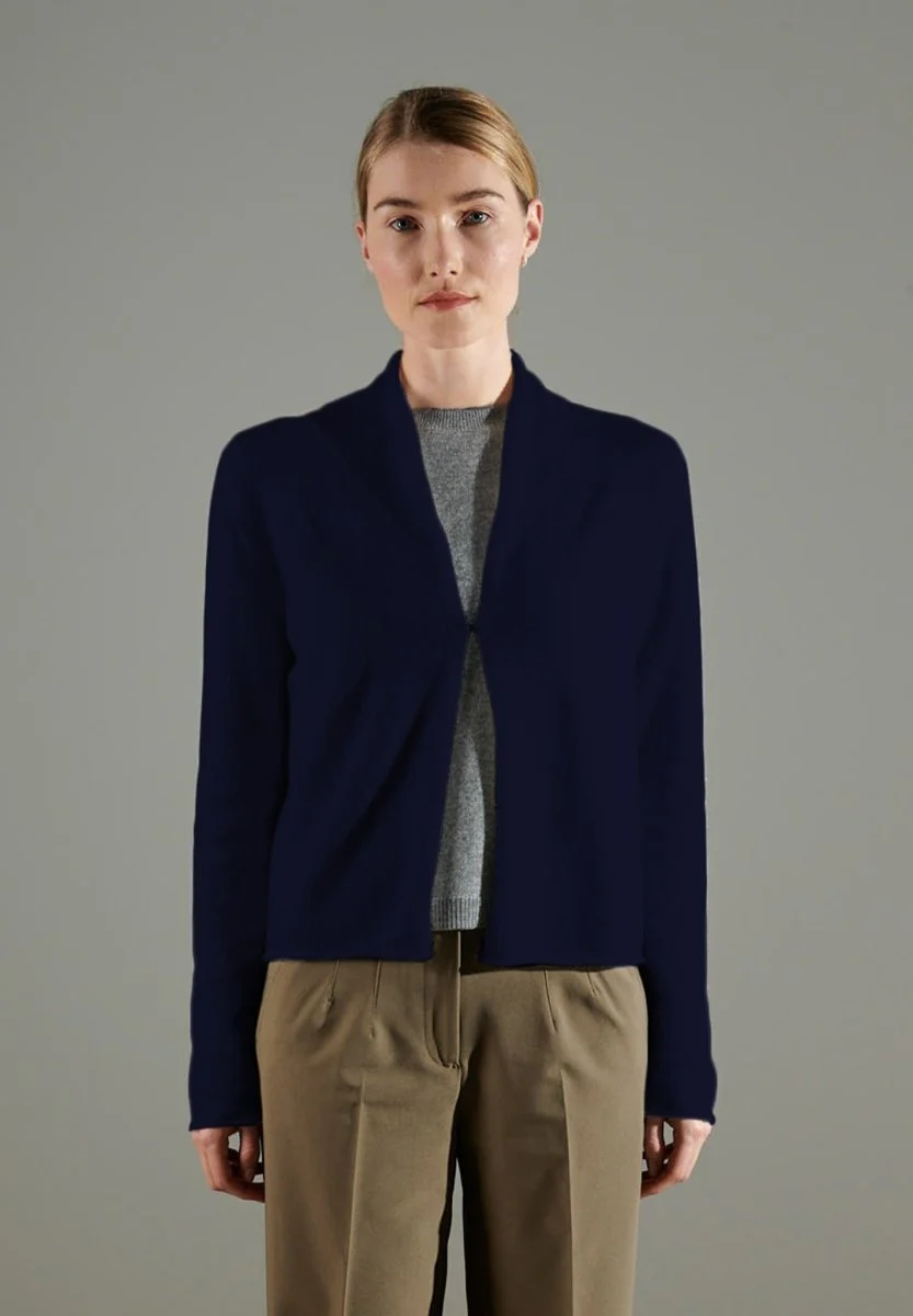 Cardigan col châle femme en cachemire bleu marine – NAMI 2