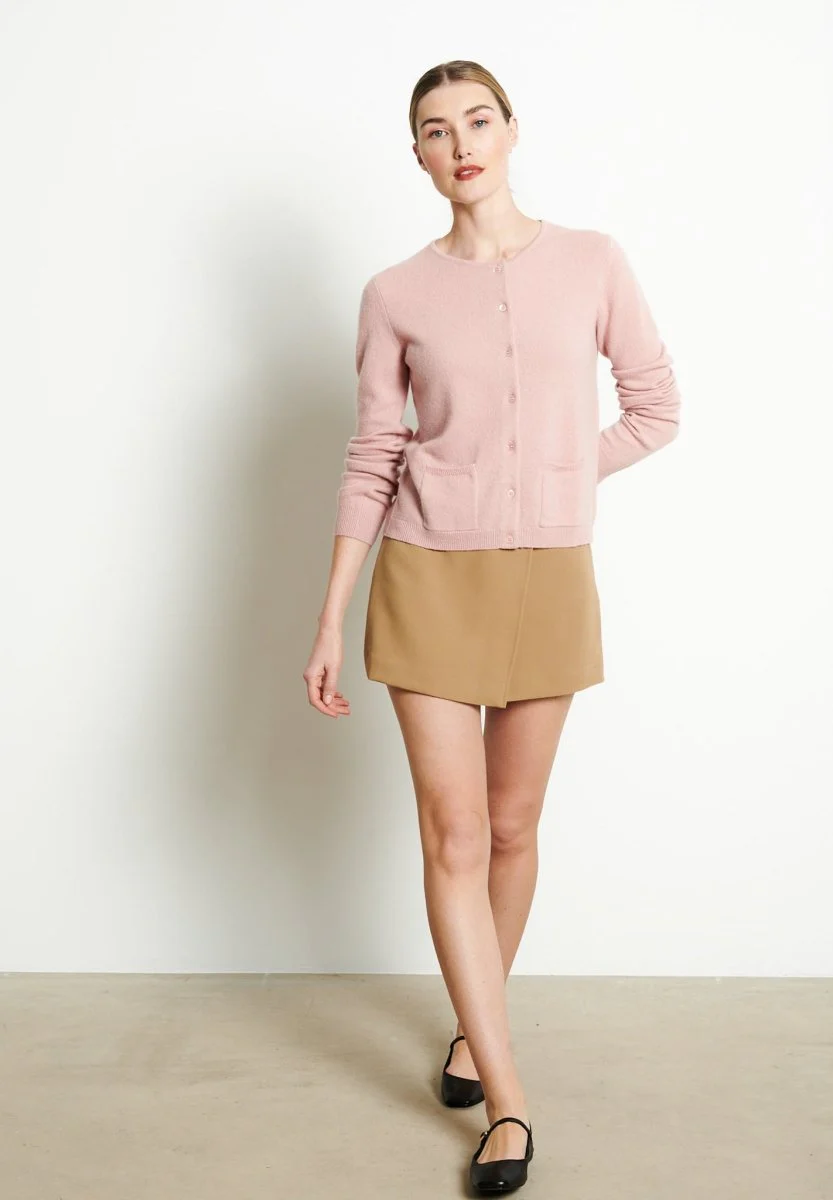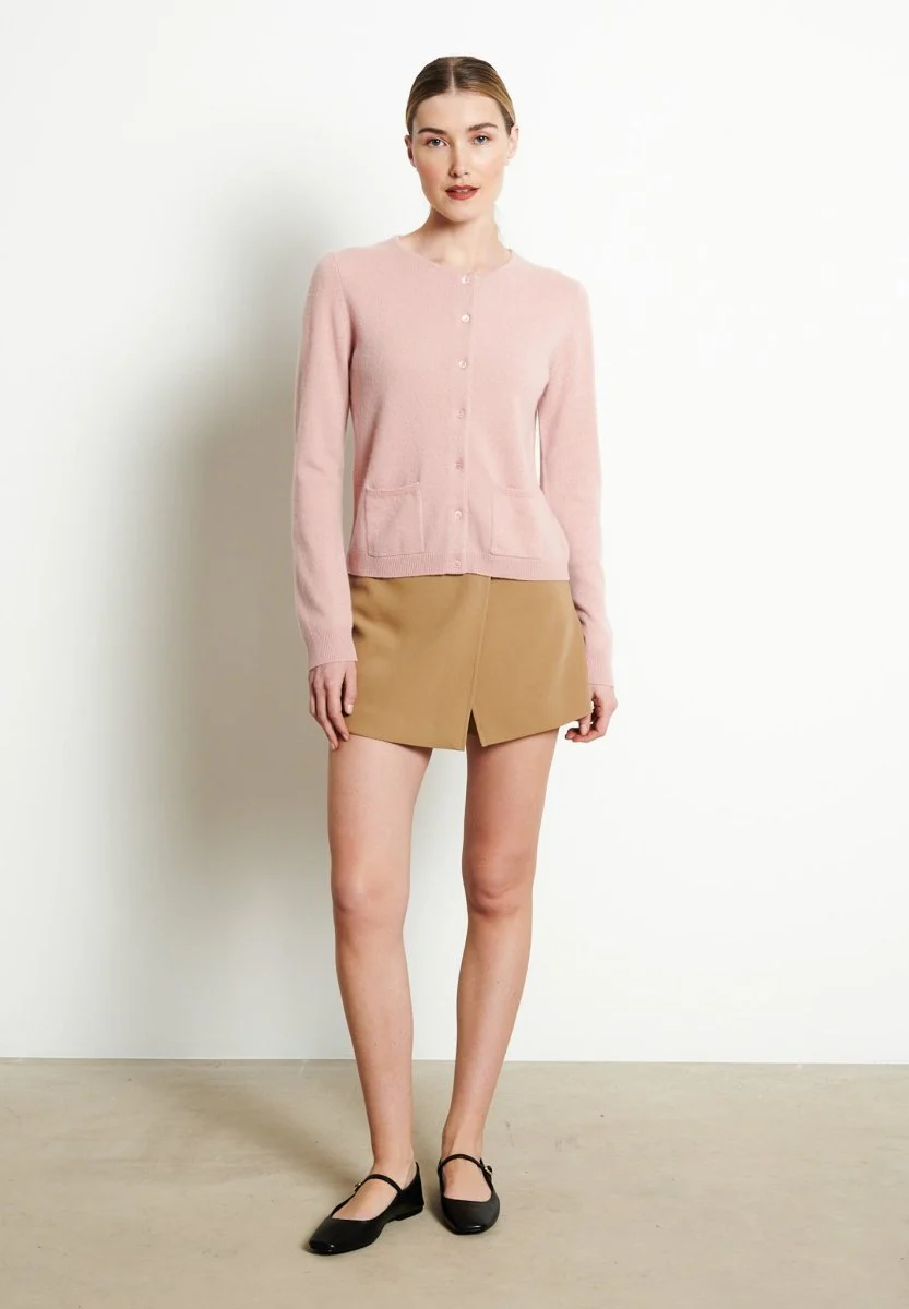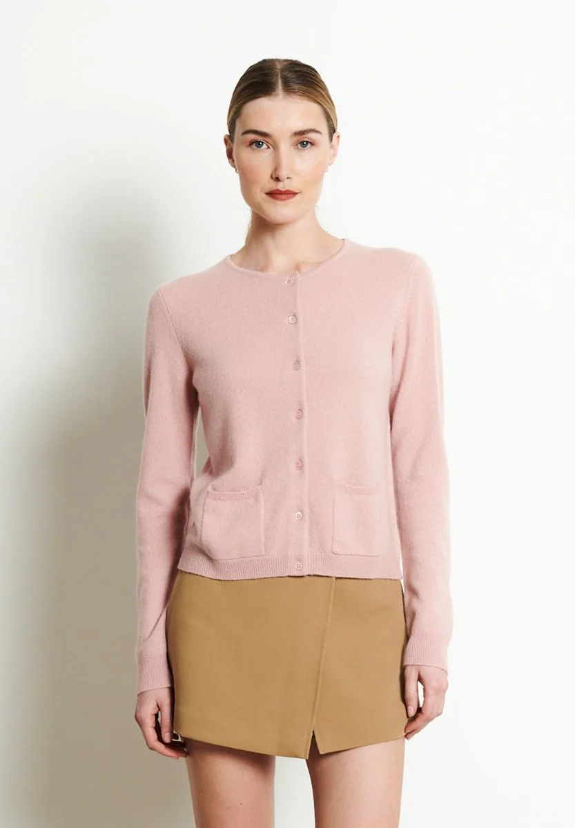 Cardigan col rond femme en cachemire rose poudré – LILLY 4B