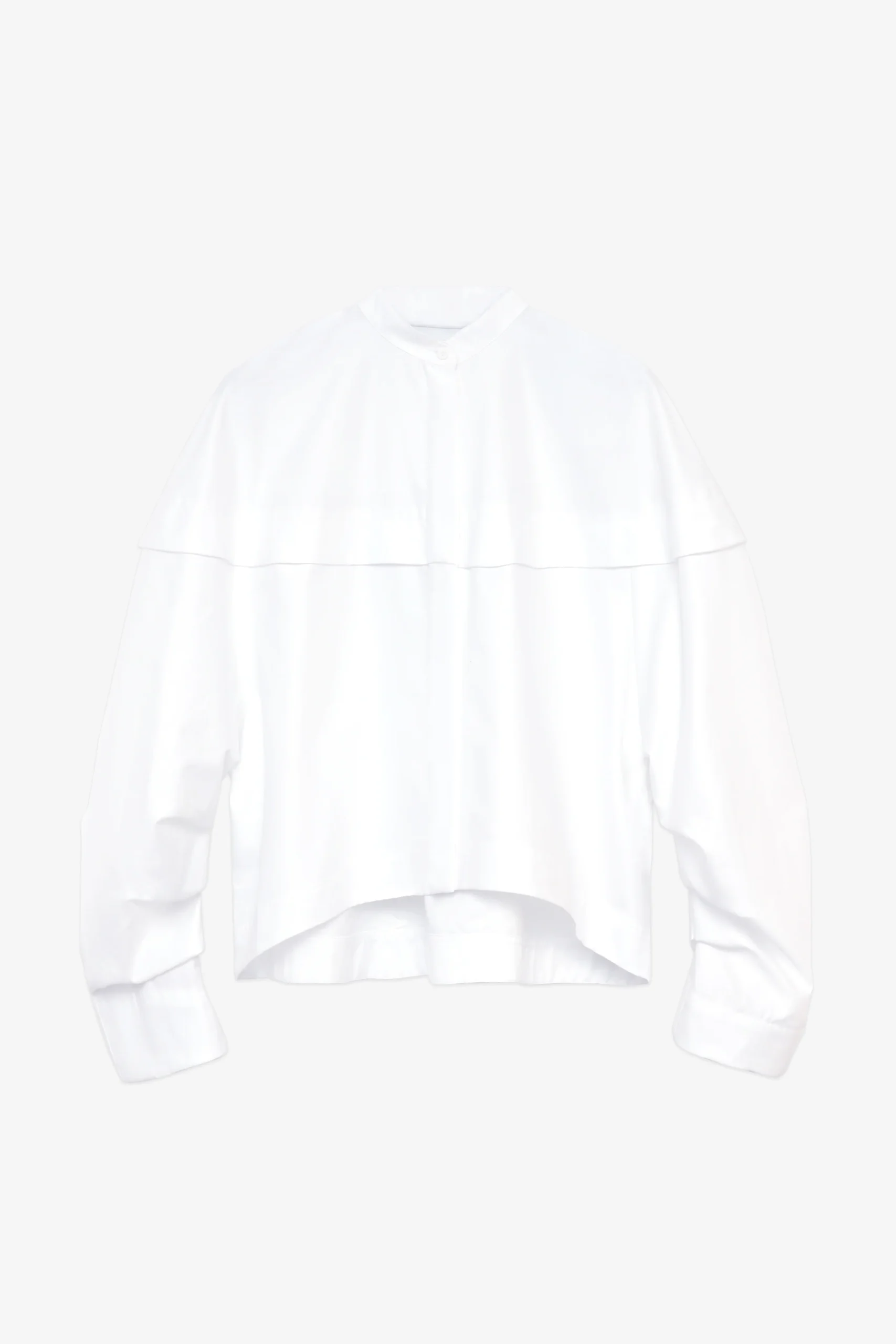 Col rond Coupe oversize Manches longues ballon Fermeture boutonnée devant avec patte cachée Détails de plis au niveau des manches Découpe bas volet sur le haut