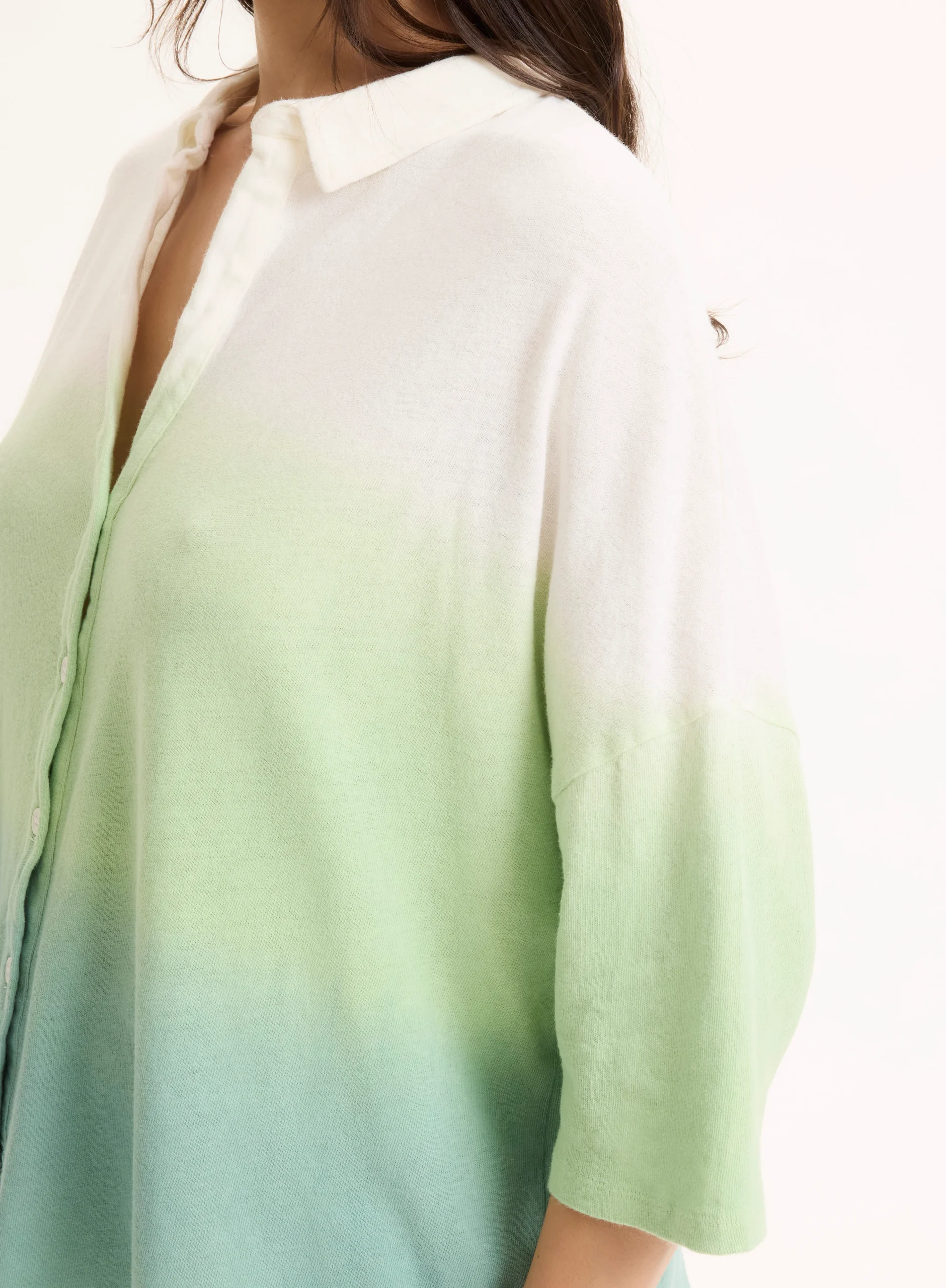 Chemise Vert clair Col Chemise Manches Coudes en Coton organique / Lin