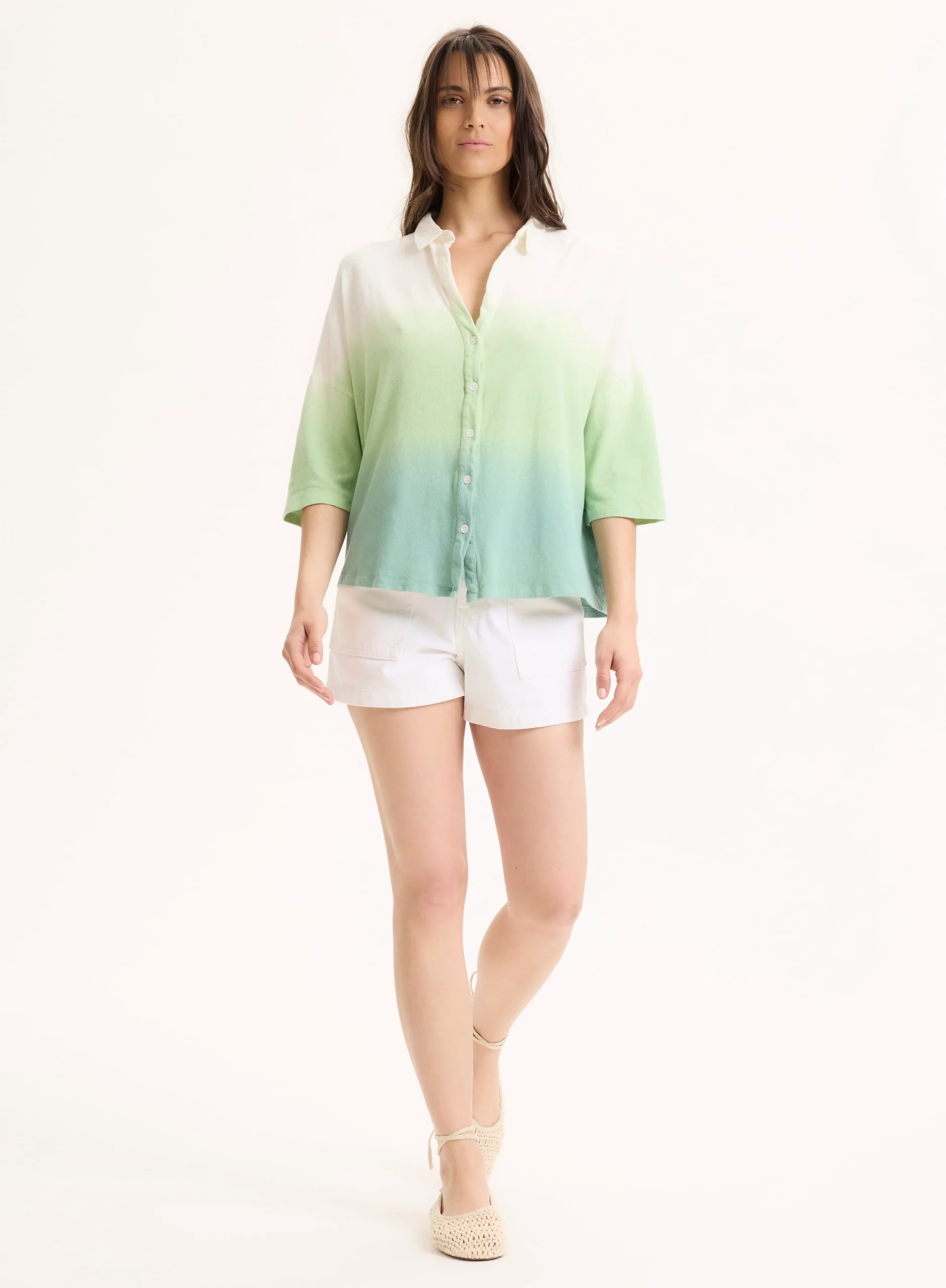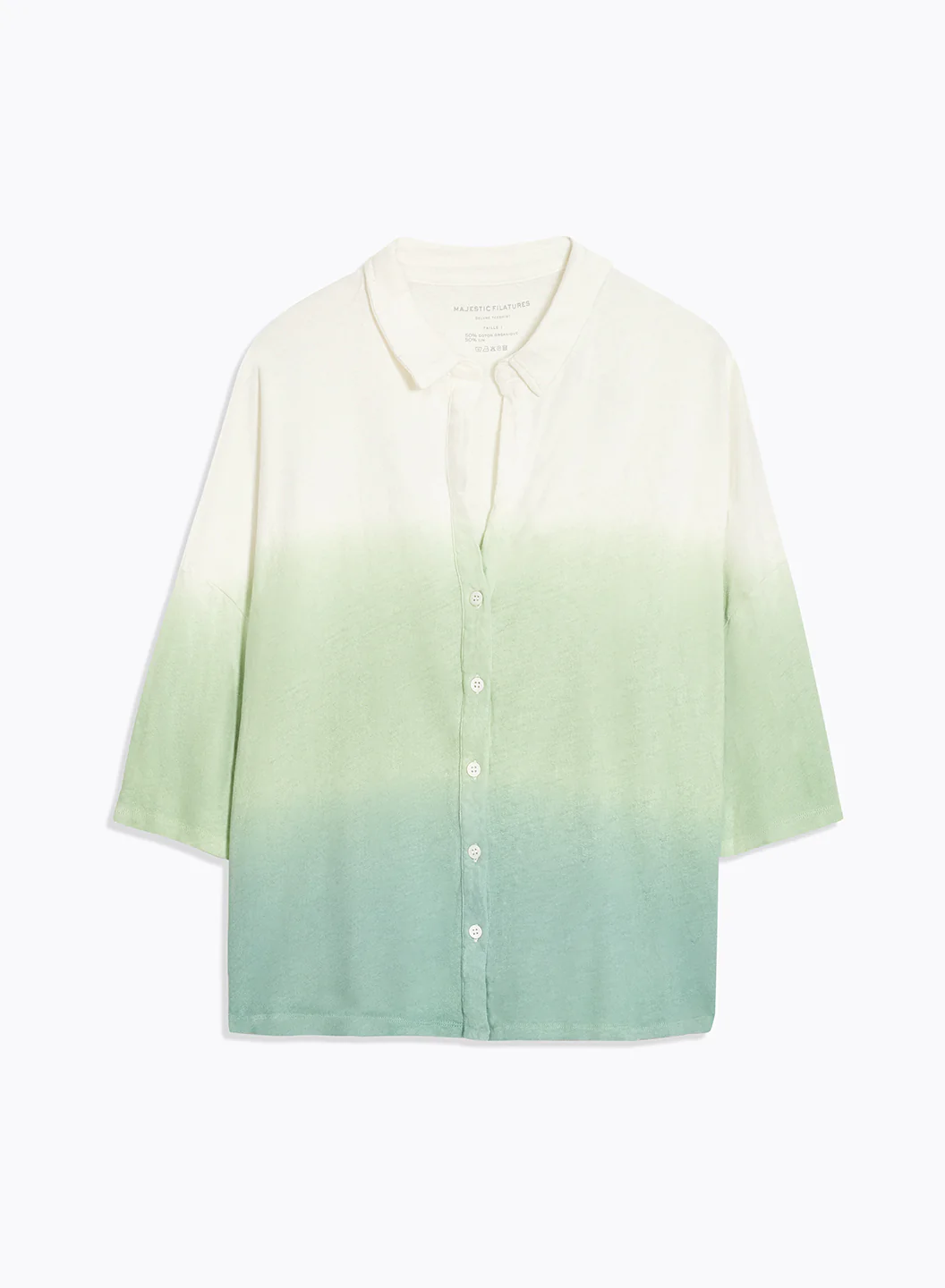 Chemise Vert Clair Col Chemise Manches Coudes en Coton Organique Lin