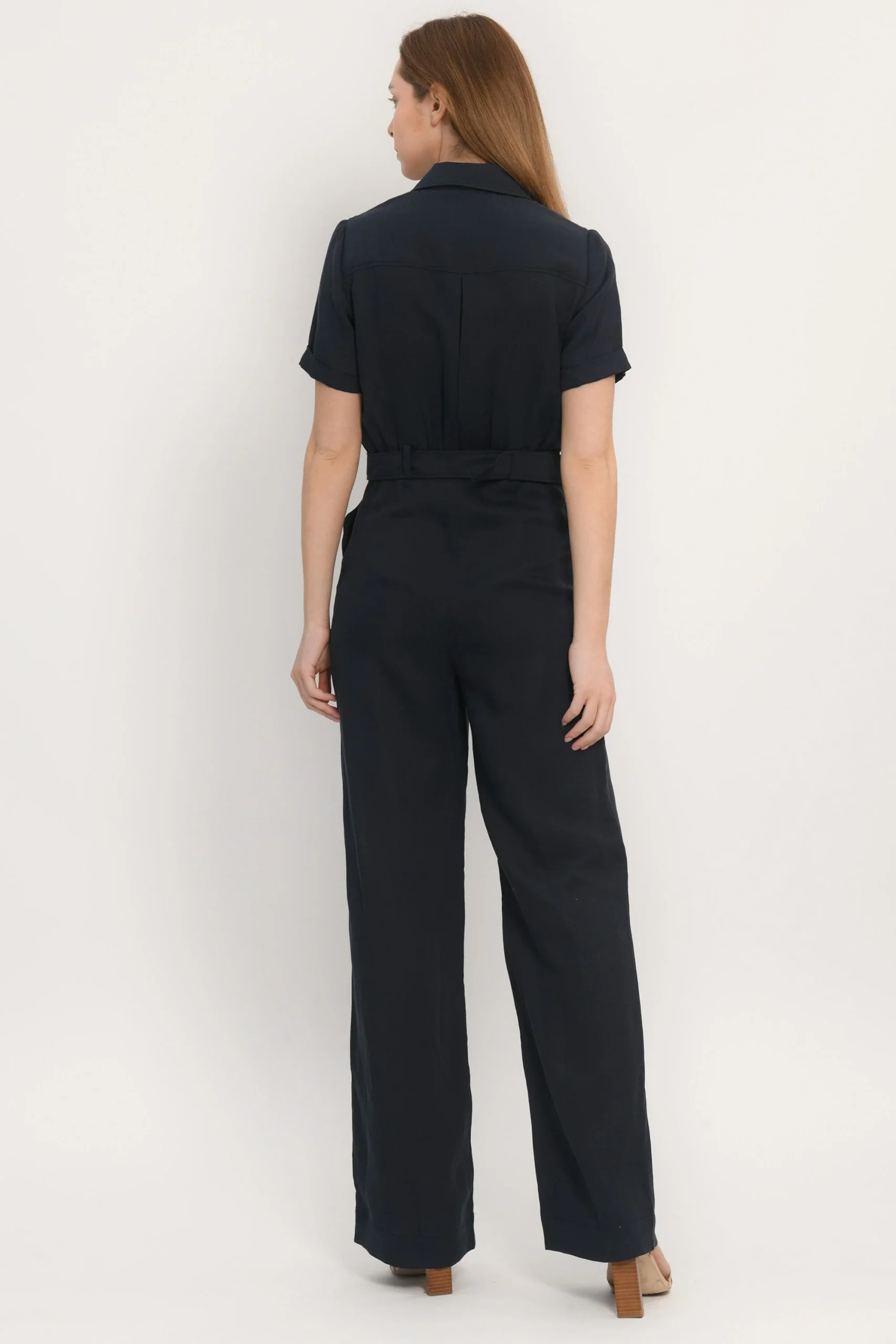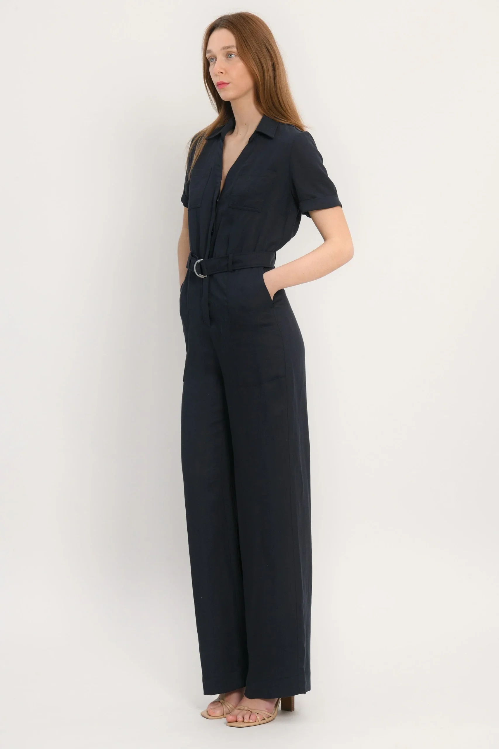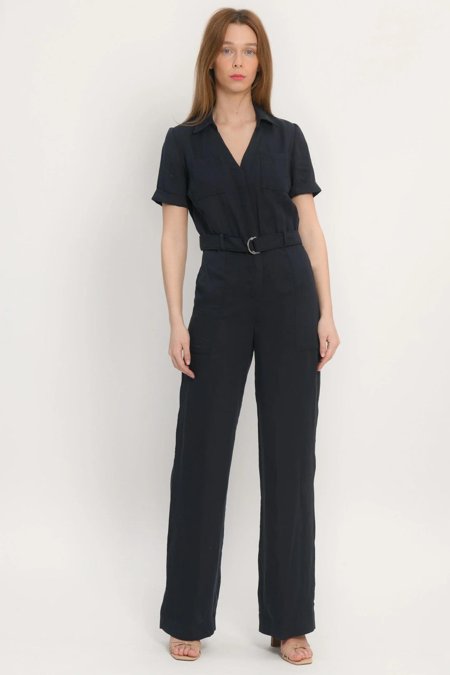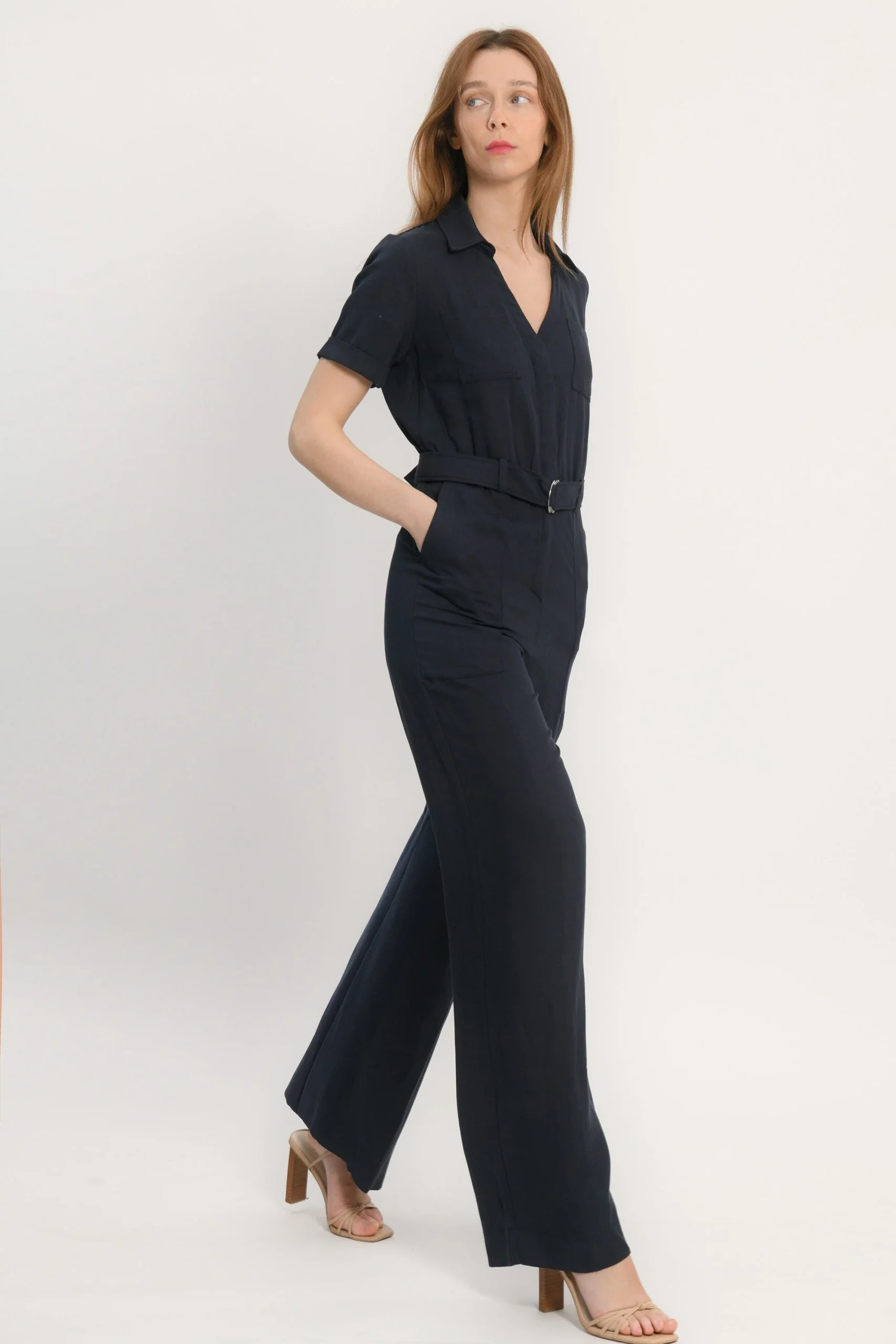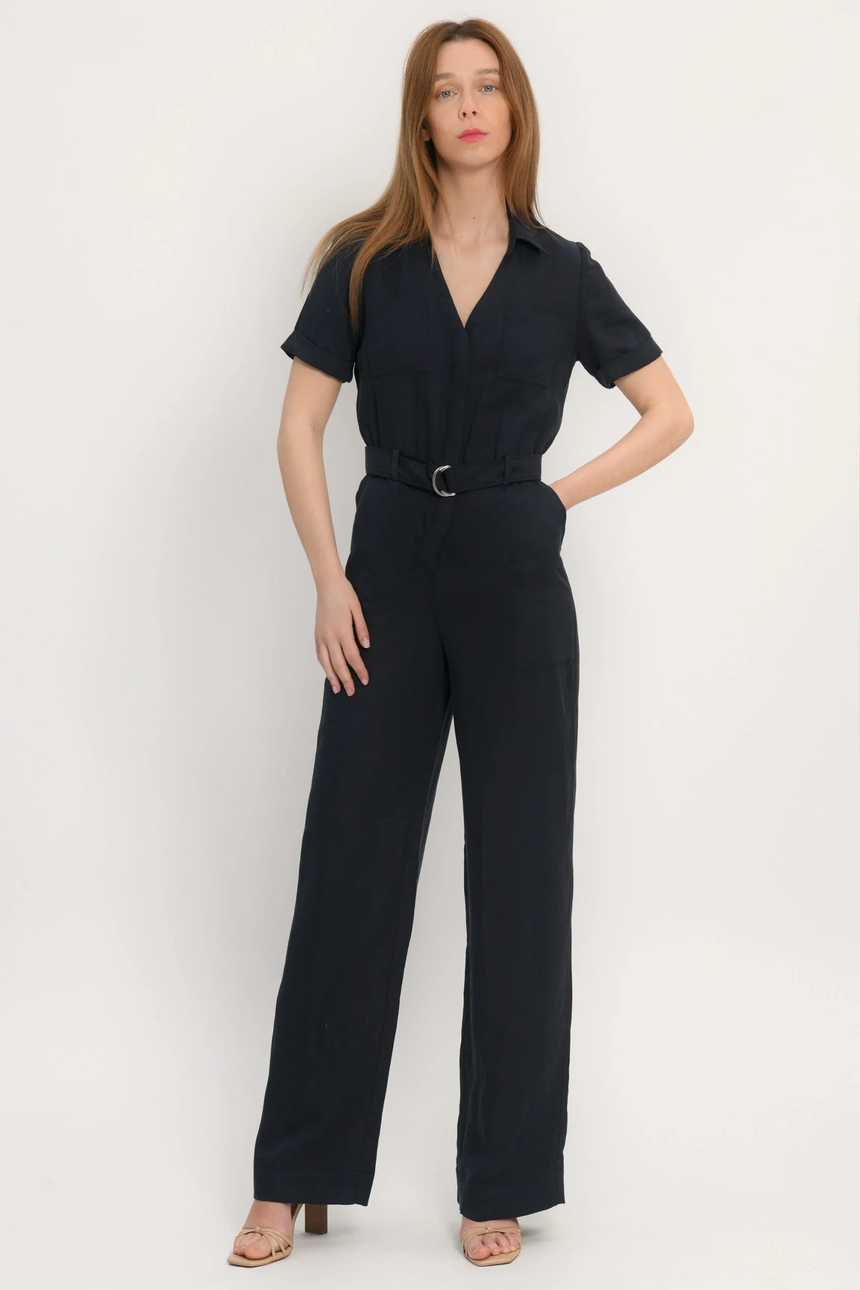 La combinaison Ariane, alliée de votre silhouette et de votre style!Confectionnée en lyocell et en lin, tissu fluide et très agréable à porterHaut forme chemise, col avec ouverture V et boutonnage sous patteManches courtes, poches plaquées à la poitrineDécoupe taille, avec ceinture sur passantsJoli détail de la boucle métalDeux poches italiennesPartie pantalon forme droite et […]