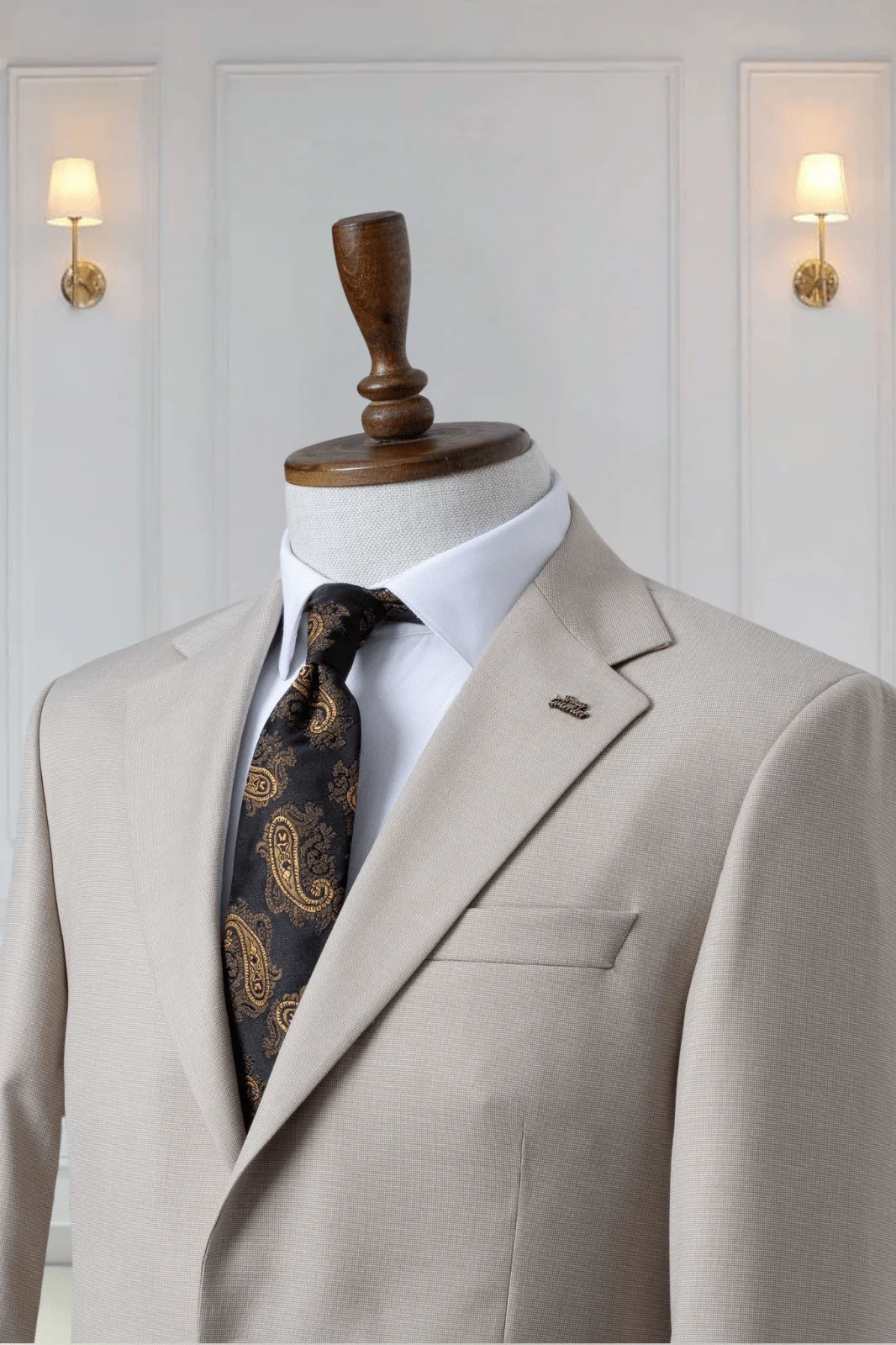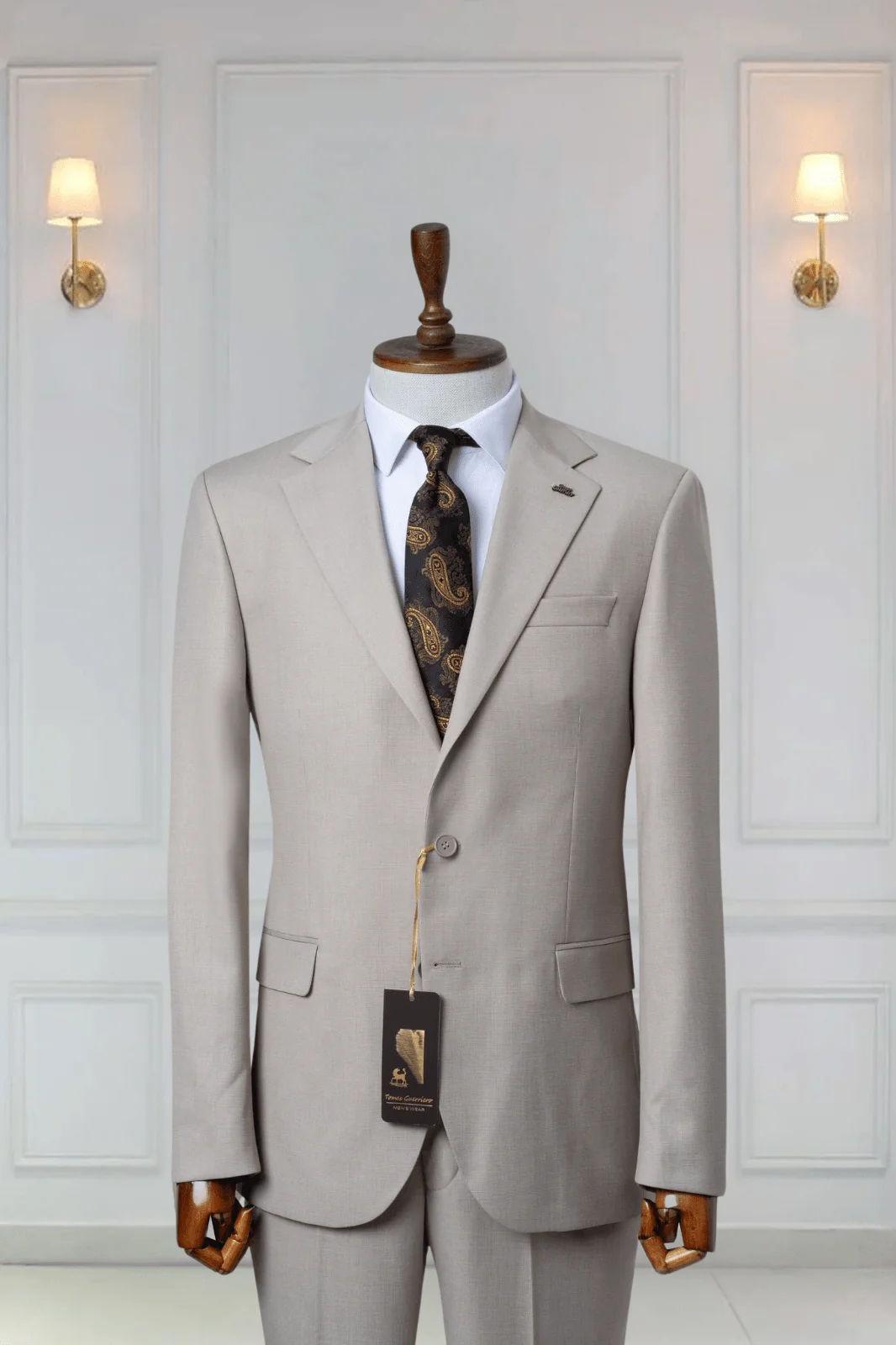 Ce costume deux pièces en beige uni incarne une élégance discrète et raffinée. Conçu dans un tissu léger et confortable, il est parfait pour les événements formels et les occasions estivales. Le beige est une couleur polyvalente qui apporte une touche de douceur et de sophistication, idéale pour ceux qui souhaitent un look raffiné sans en faire trop.