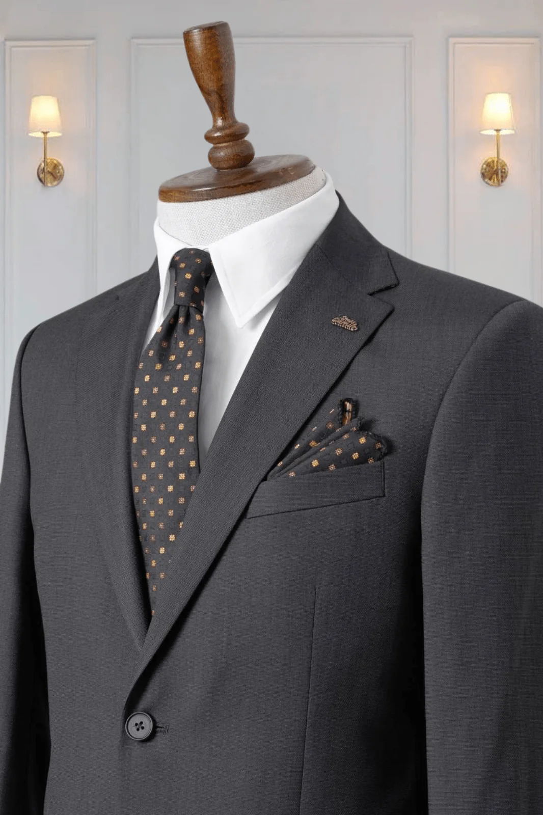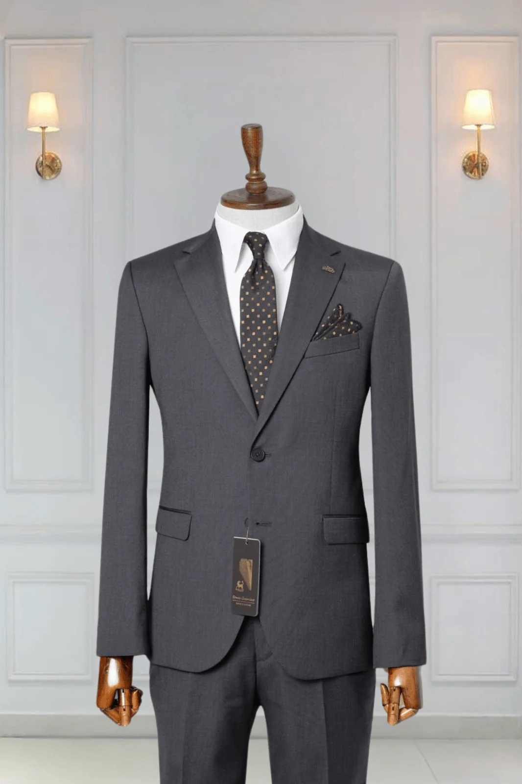 Ce costume deux pièces en gris anthracite est une pièce incontournable pour toute garde-robe élégante. Sa teinte gris foncé sophistiquée offre une allure intemporelle et polyvalente, idéale pour les occasions formelles comme les réunions professionnelles ou les mariages.