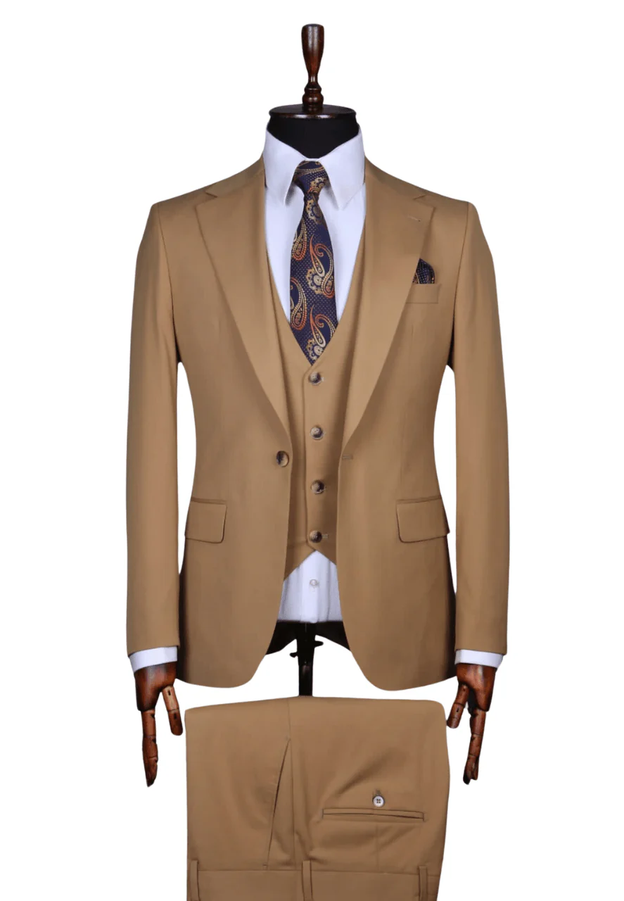 Pour un look complet, associez ce costume à des chaussures en cuir marron ou noir. Avec ce costume trois pièces beige de Moubarak Shop, soyez prêt à captiver l’attention et à faire une impression durable lors de vos occasions spéciales.