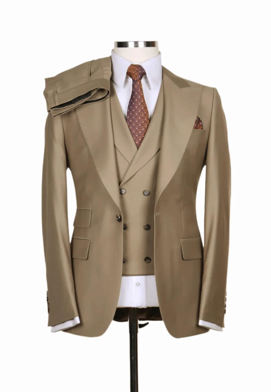 Pour un look complet, associez ce costume à des chaussures en cuir marron ou noir. Avec ce costume trois pièces beige de Moubarak Shop, soyez prêt à captiver l’attention et à faire une impression durable lors de vos occasions spéciales.