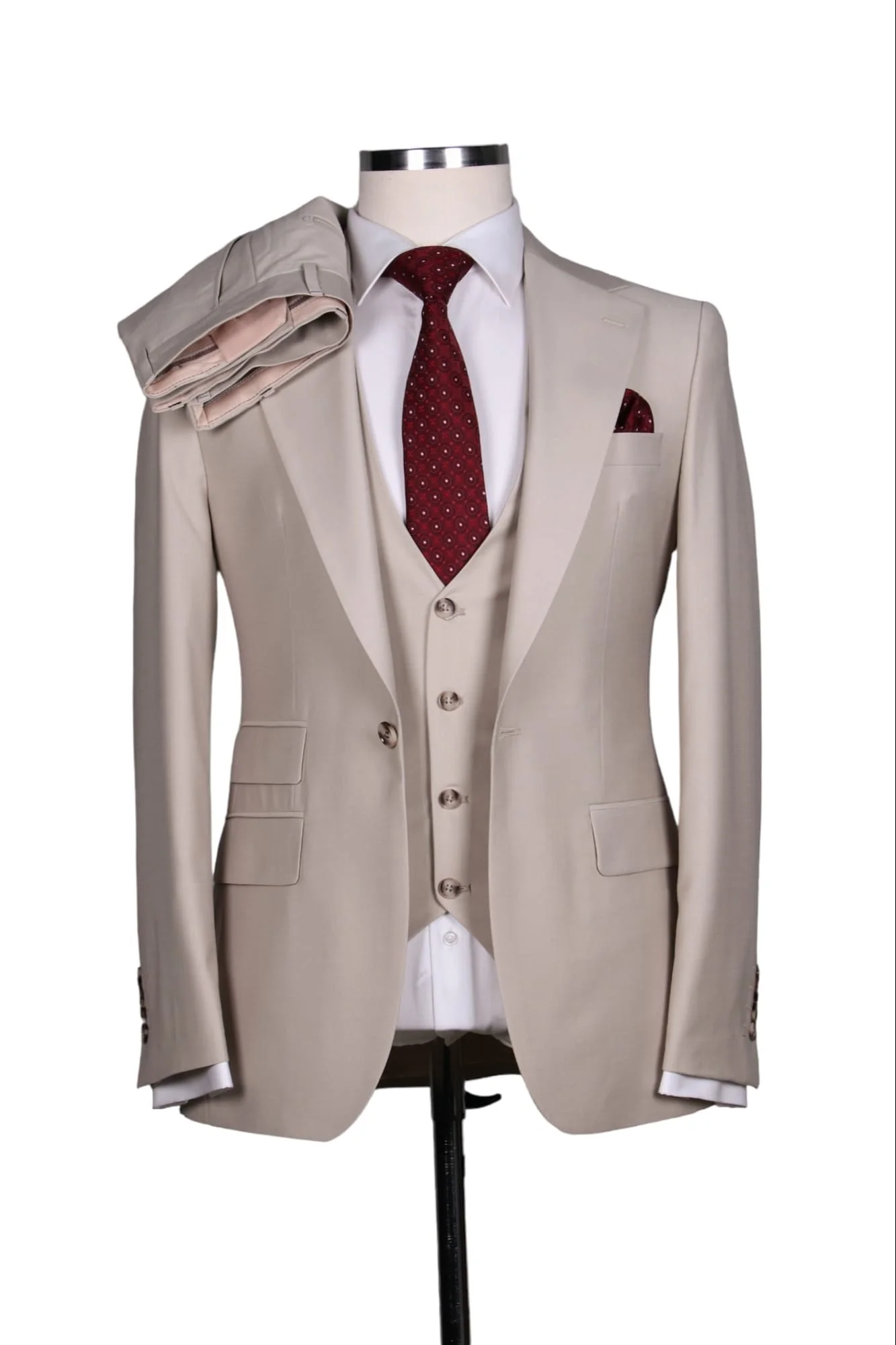 Inspiré du style du costume trois pièces porté par les gentlemen anglais distingués, cet ensemble 3 pièces vous fera vous sentir comme une star de cinéma. Fabriqué à partir de laine 100% de qualité supérieure, ce costume se caractérise par une confection raffinée avec des matériaux de haute qualité. Ce costume vous rendra sûrement élégant et confiant.