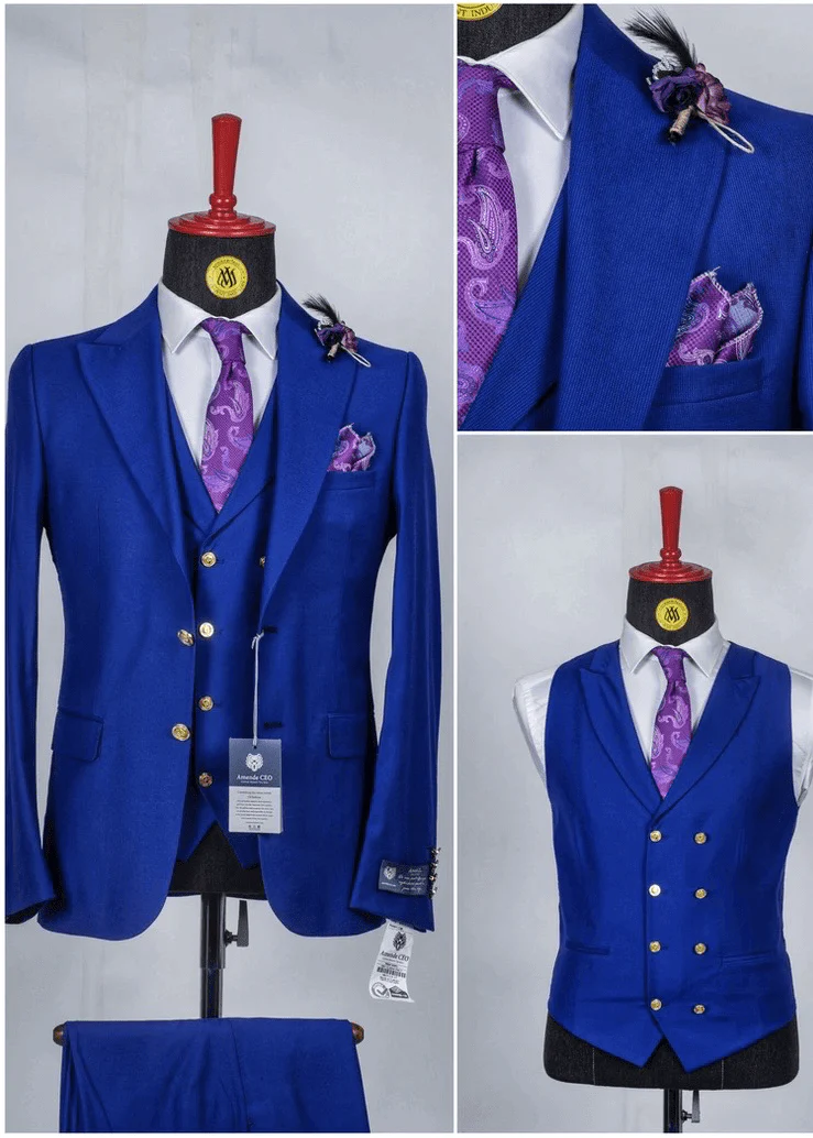 Nous ne plaisantons pas lorsque nous disons que nous avons ce qu’il vous faut avec ce costume bleu 3 pièces. Portez-le au travail ou lors d’une soirée en ville avec vos amis et votre famille. C’est le complément parfait à toute garde-robe avec sa grande variété d’utilisations et c’est un excellent cadeau pour quelqu’un qui pourrait utiliser un peu de style dans sa vie. Peu importe qui vous êtes, ce costume est parfait pour vous !