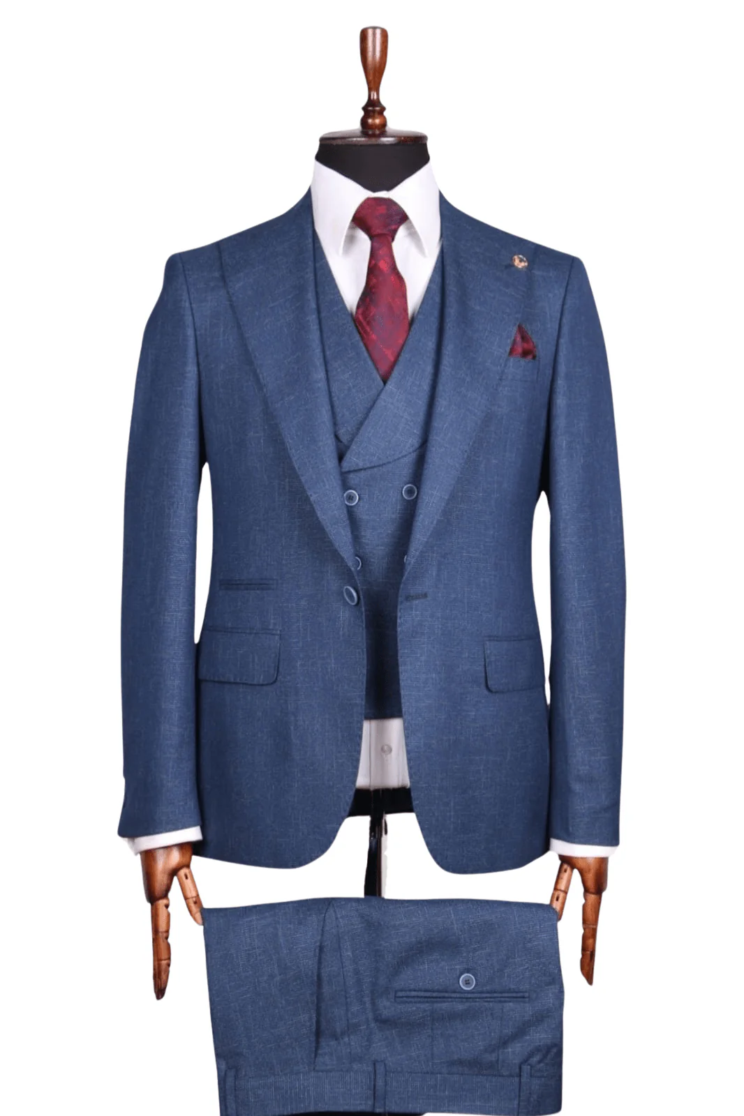 Design : Costume trois pièces comprenant une veste à deux boutons, un gilet assorti à double boutonnage, et un pantalon élégant. La veste offre une silhouette structurée et raffinée, parfaite pour affirmer votre présence.