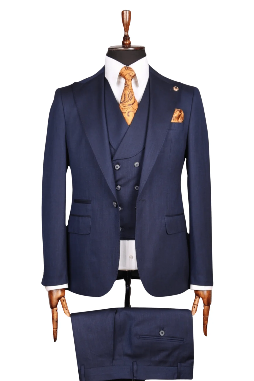 Costume 3 Pieces Bleu Nuit Poches Plaquées
