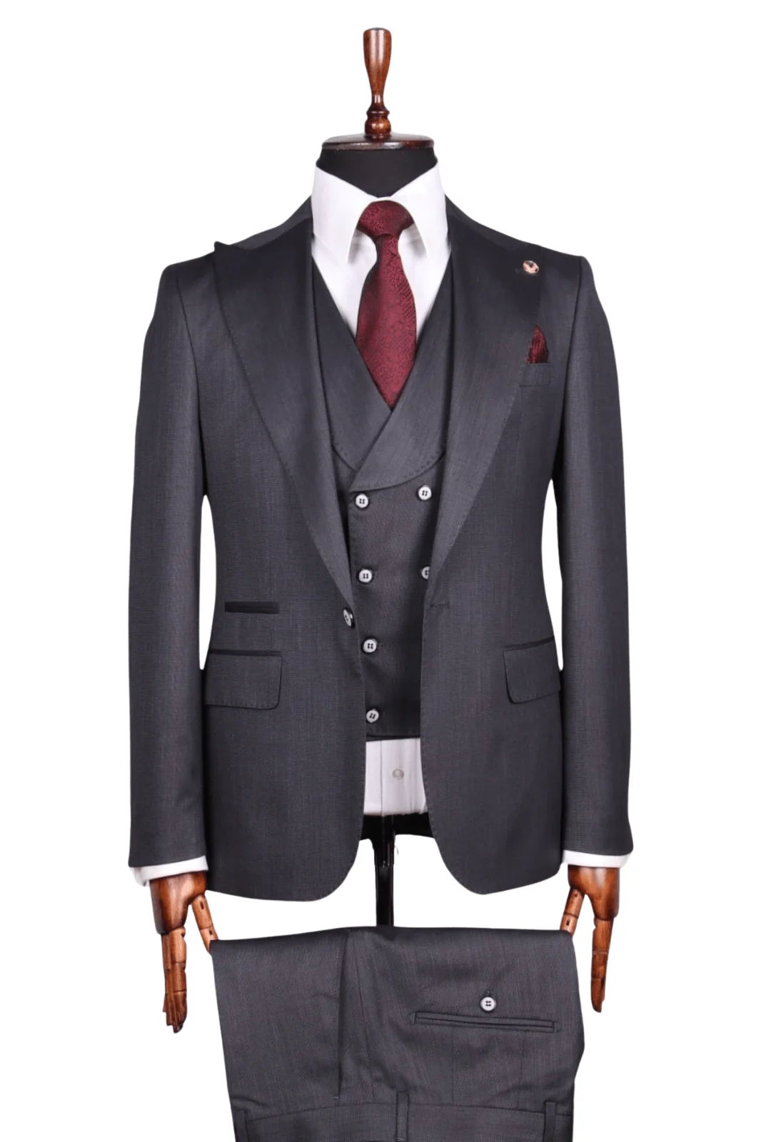 Design : Costume trois pièces comprenant une veste à deux boutons, un gilet assorti à double boutonnage, et un pantalon élégant. La veste offre une silhouette structurée et raffinée, parfaite pour affirmer votre présence.