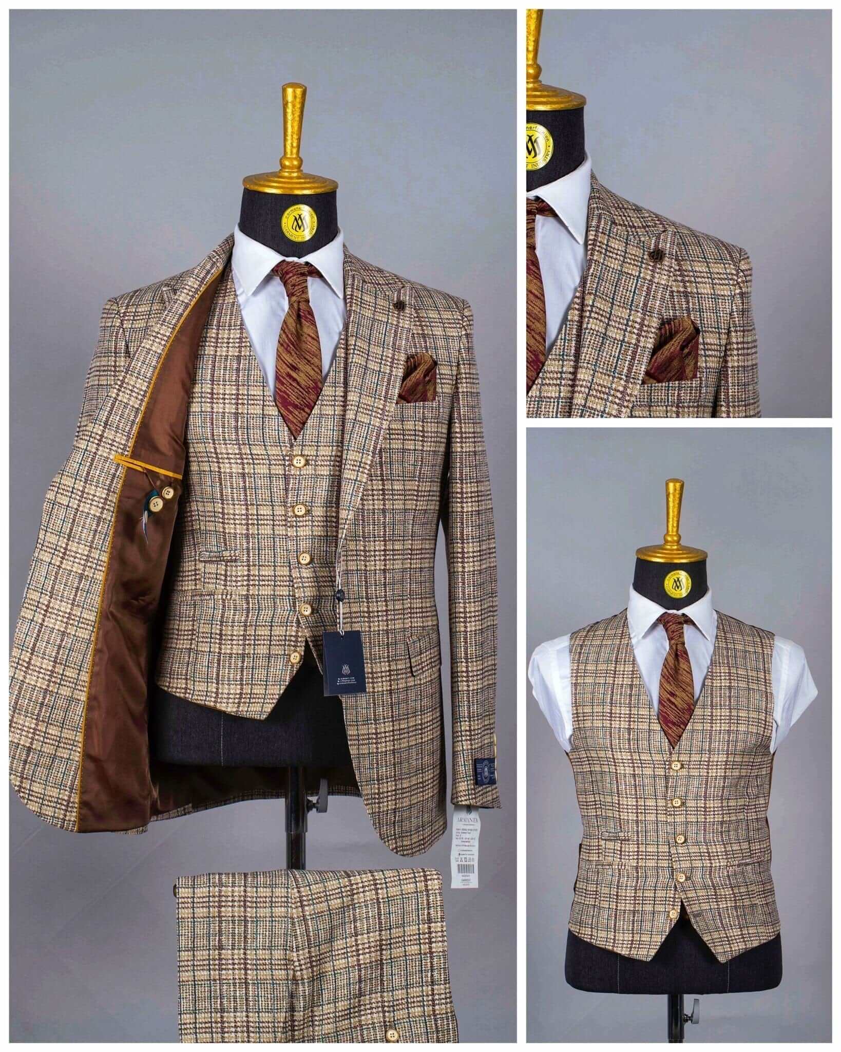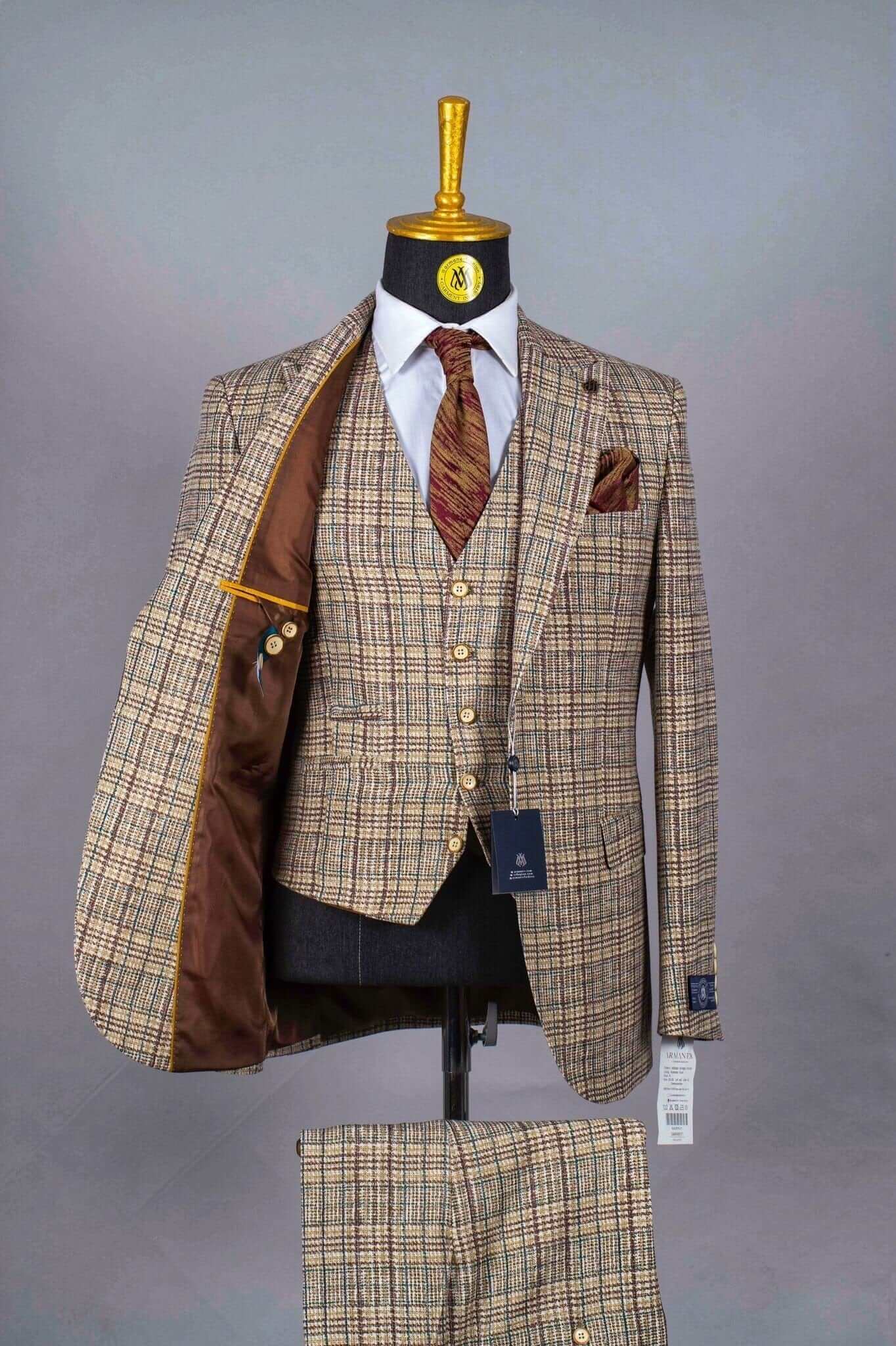 Costume 3 Pièces à Carreaux Bordeaux et Vert
