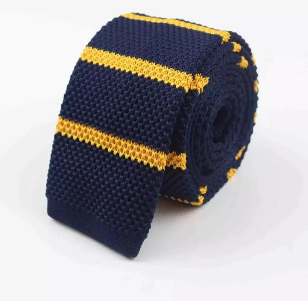 Cravate tricotée à bout carré bleu jaune CVT16