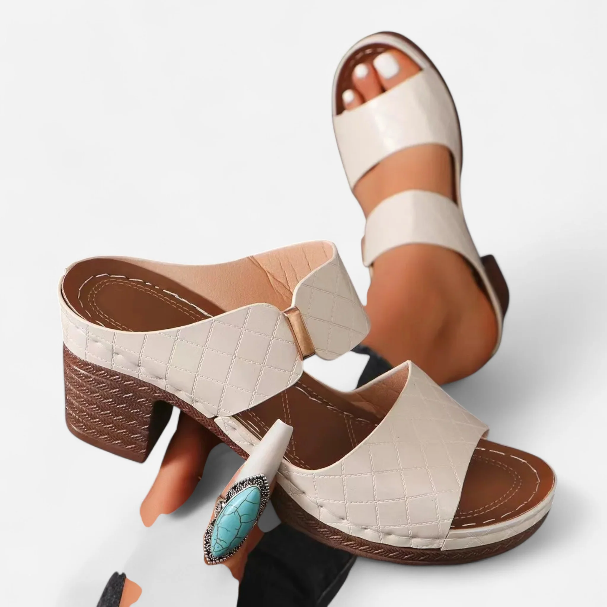 Sandales en simili cuir matelassé avec talon sculpté – Élégance et confort