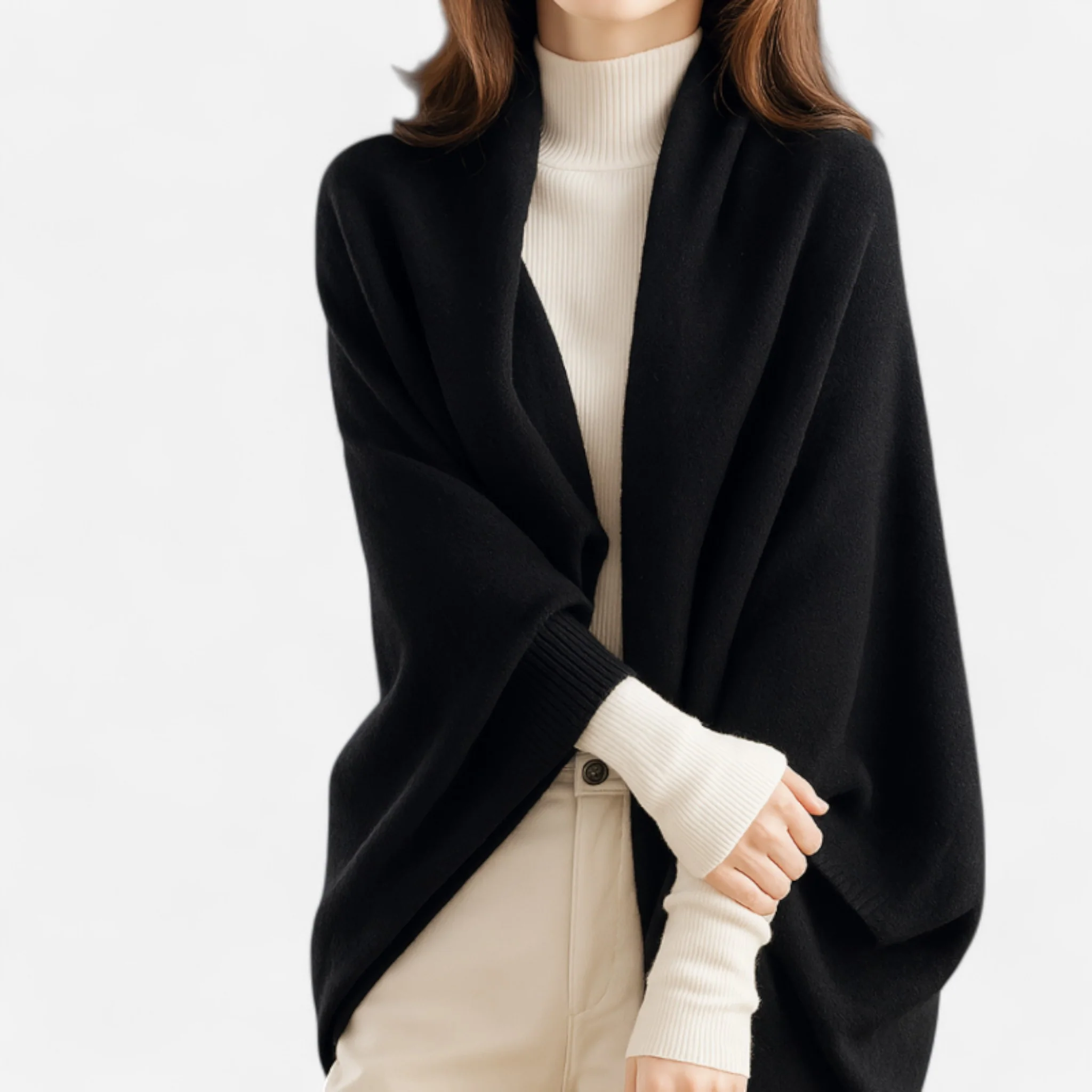 Châle en Cachemire Doux avec Silhouette Drapée – Élégance Éternelle