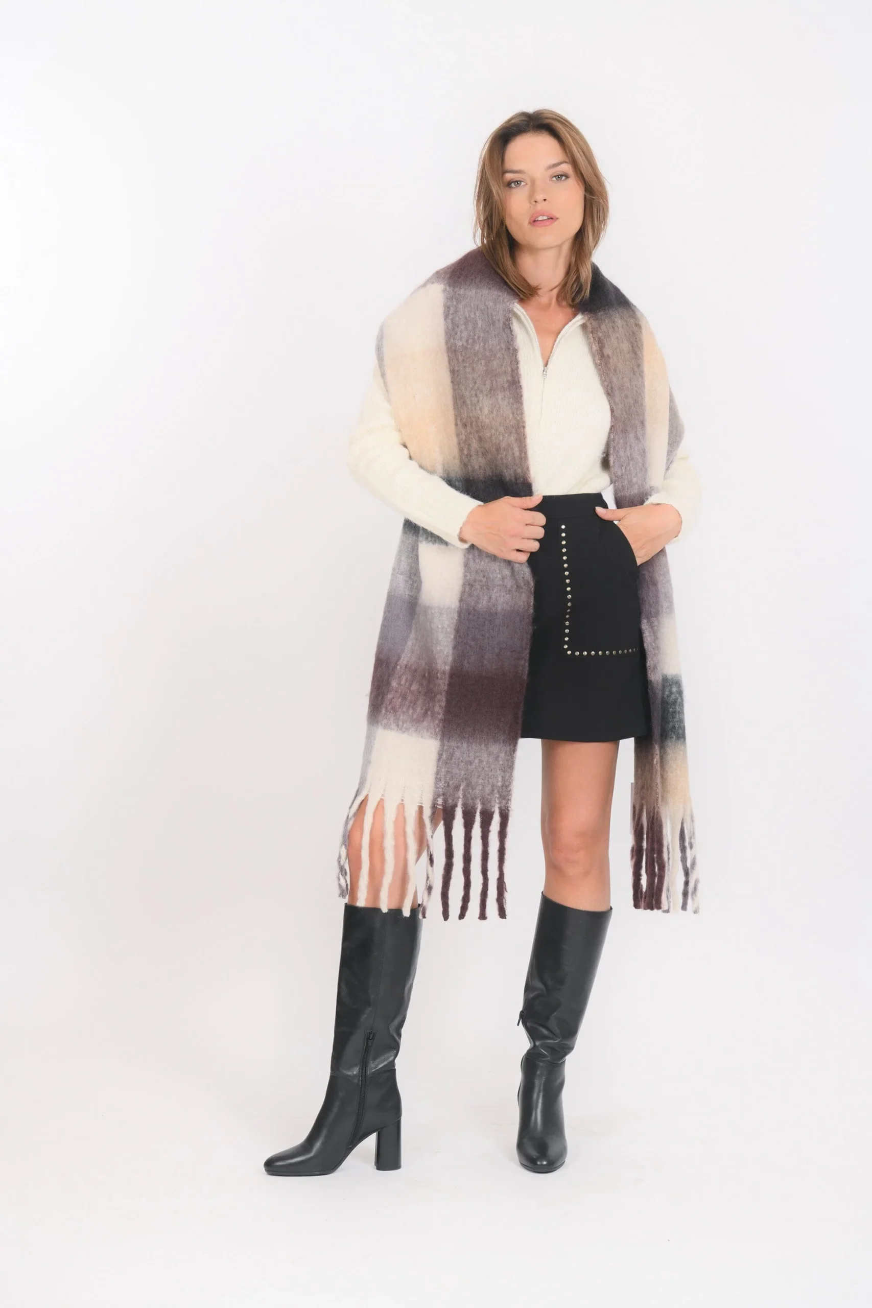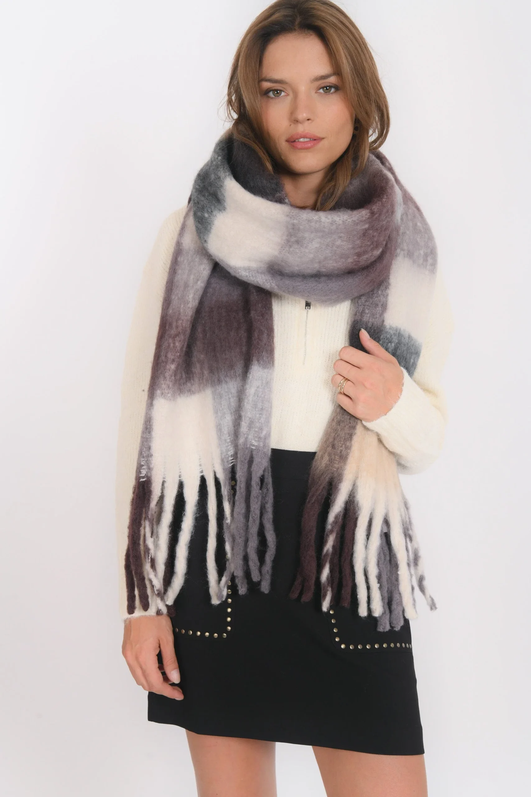 Un cocon de douceur à votre cou avec l’écharpe BonaMaille moelleuse très douce, motif de grands carreauxFranges sur les extrémitésDimensions 40cm sur 200cm (hors franges)