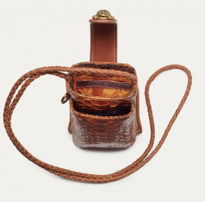 Cette pochette en python et cuir suédé conçue afin de transporter votre téléphone est réalisée à la main. Le double Marcus est doté de deux compartiments. La poche principale vous permettra d’accueillir votre smartphone et la poche avant vos lunettes. Ces deux poches se ferment à l’aide d’un rabat aimanté, orné d’un scarabée doré. À […]