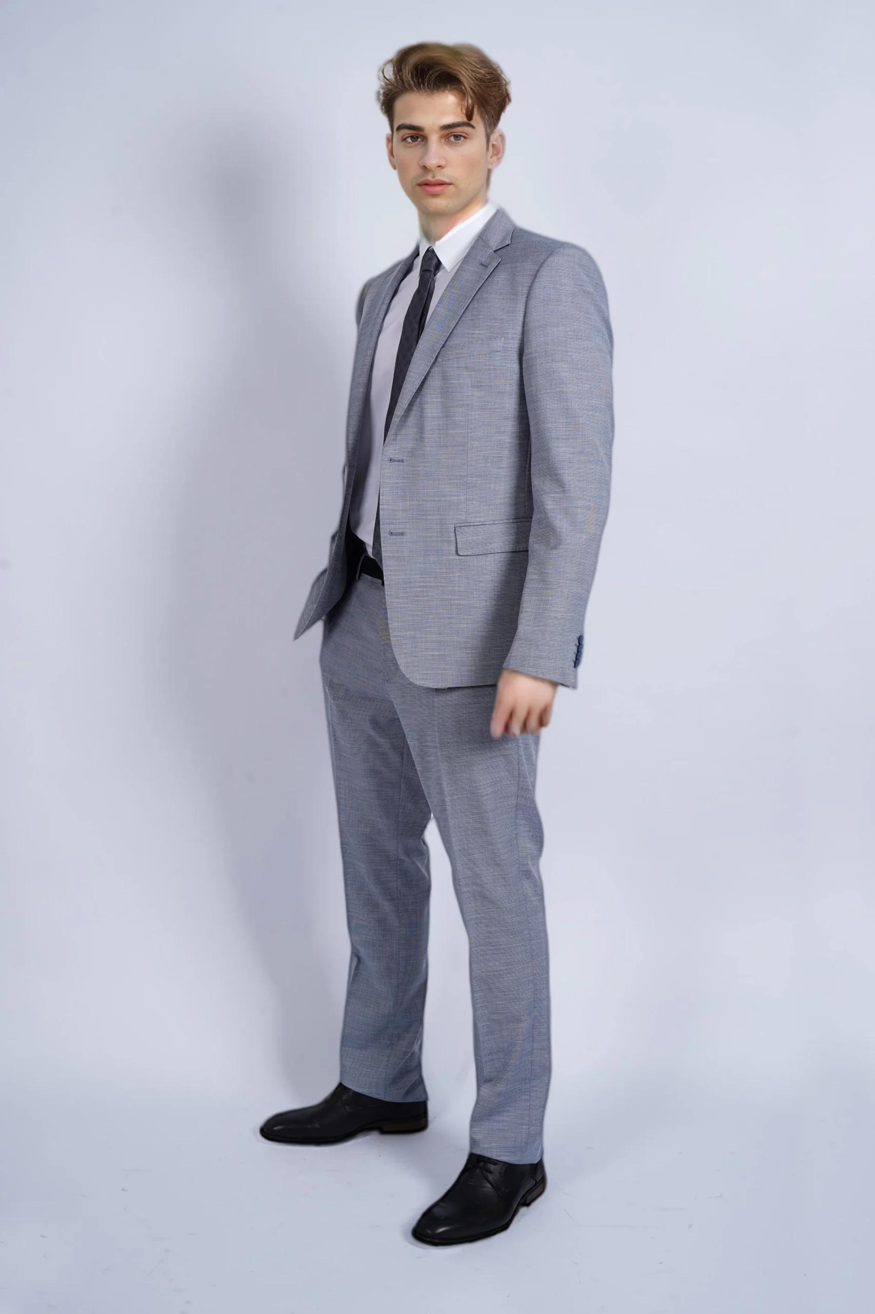 Costume casual slim fit, veste a col tailleur, coupe près du corps,