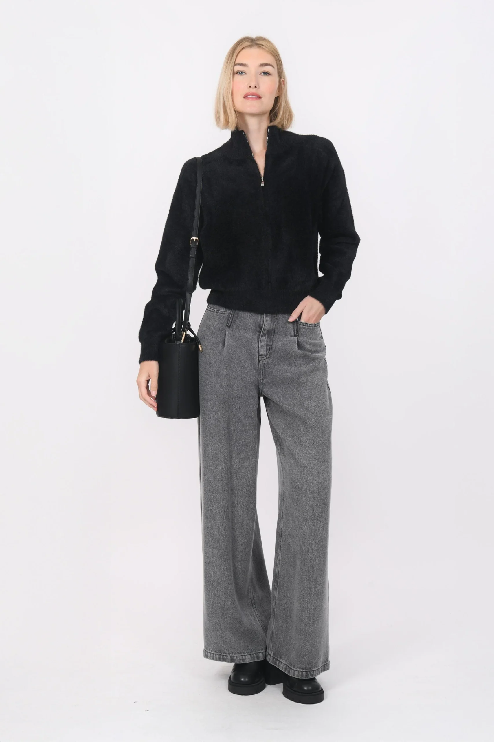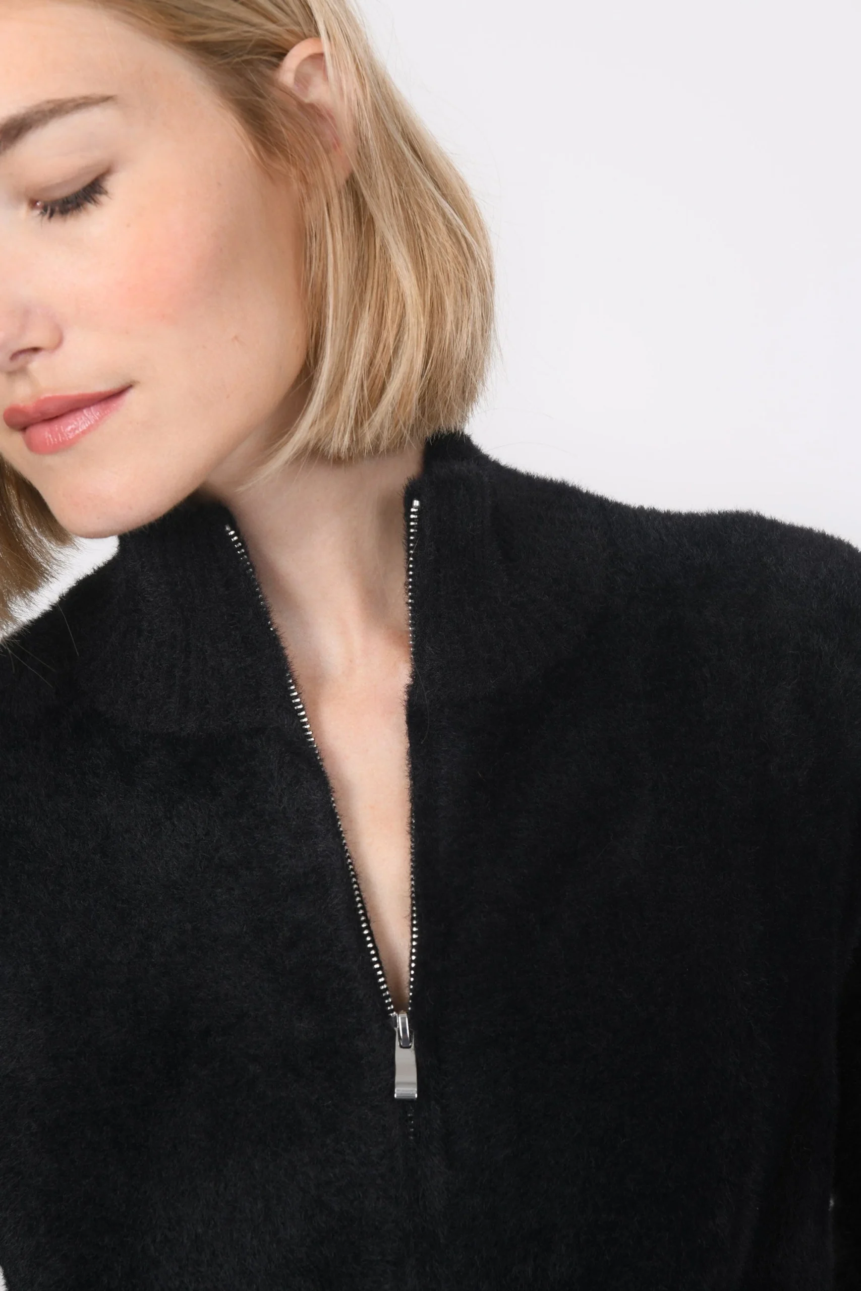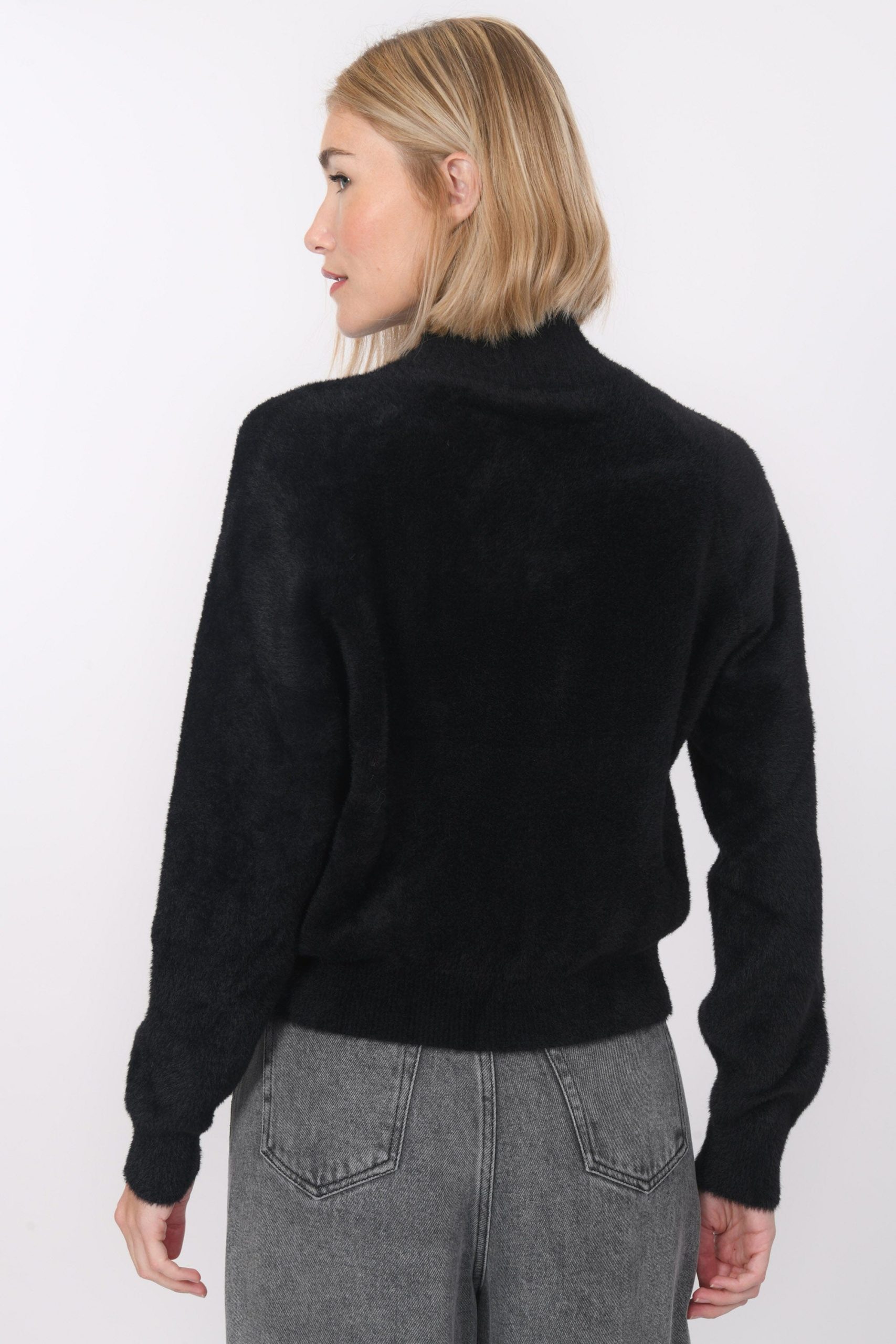 Belen, le gilet doudou à l’esprit camionneurMaille moelleuse effet fluffyCol montant avec grand zip milieu devantEmmanchures raglan Coupe ampleLongueur 57cm en T0 Océane mesure 1m77 et porte une taille 0