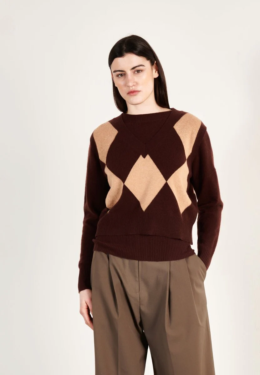 Gilet col V sans manches femme en cachemire marron & camel clair – HANA 7