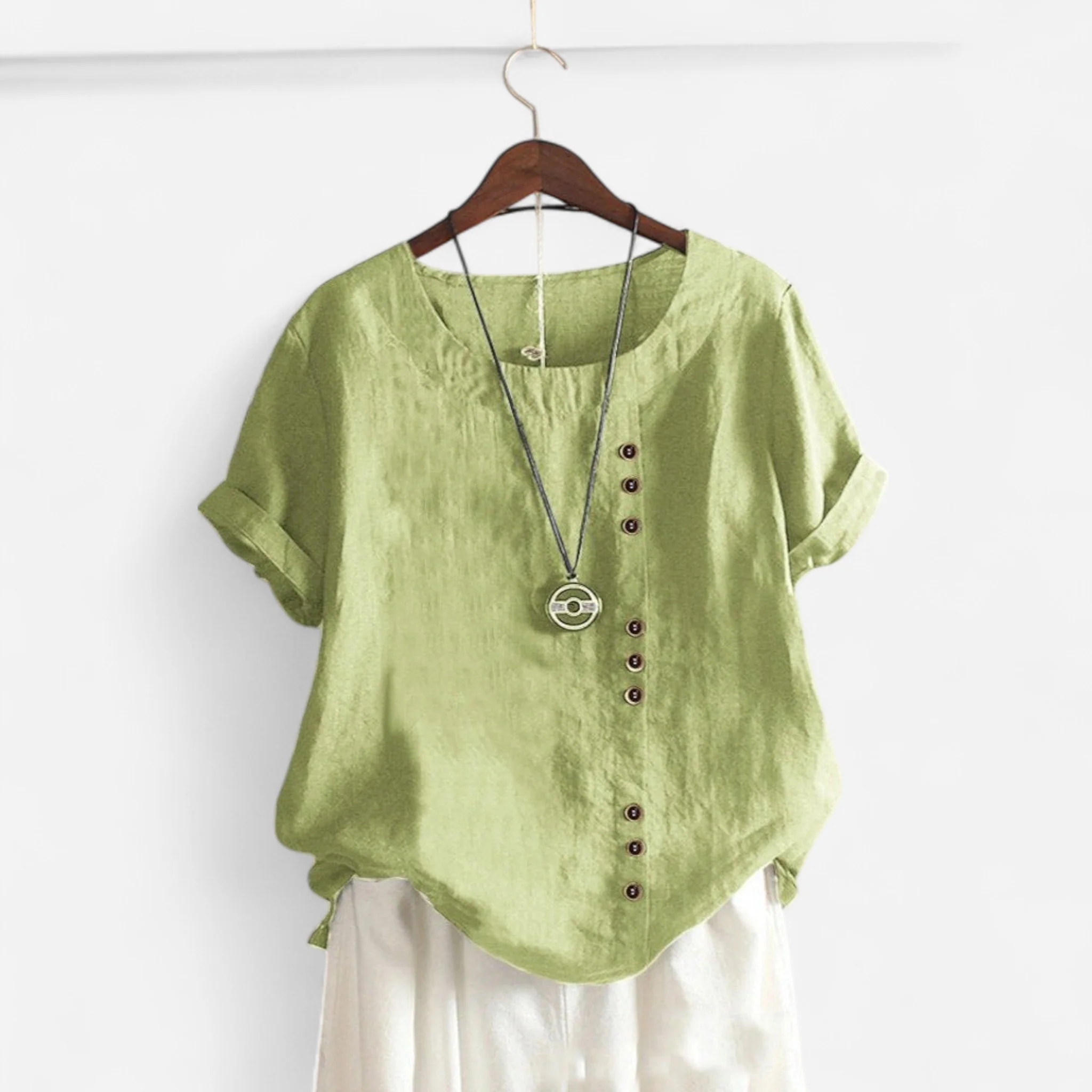 Top en Lin Asymétrique avec Boutons – Élégance Décontractée pour l’Été