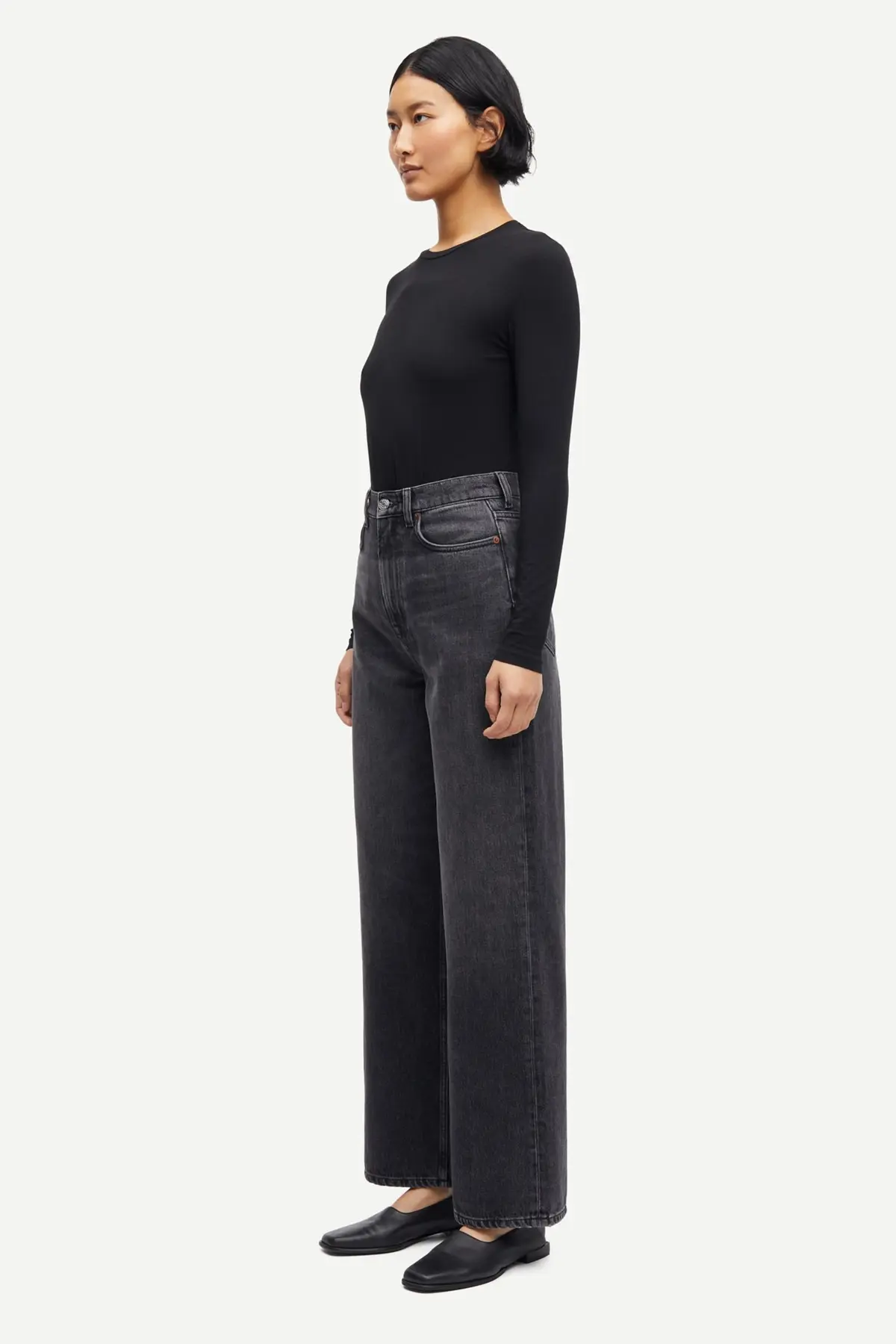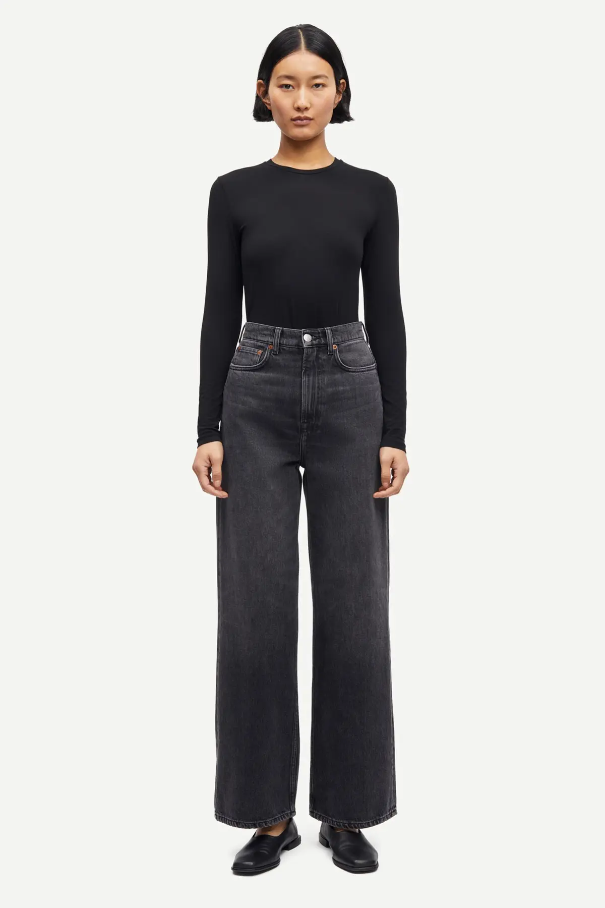 Jean ample avec une taille haute. Style western à cinq poches, zip fly. Tissu denim 100 % coton biologique avec un lavage de pierre vintage et des zones délavées. Ce produit est certifié GOTS. Chaque étape de la chaîne d’approvisionnement a satisfait à des exigences sociales, environnementales et chimiques strictes.