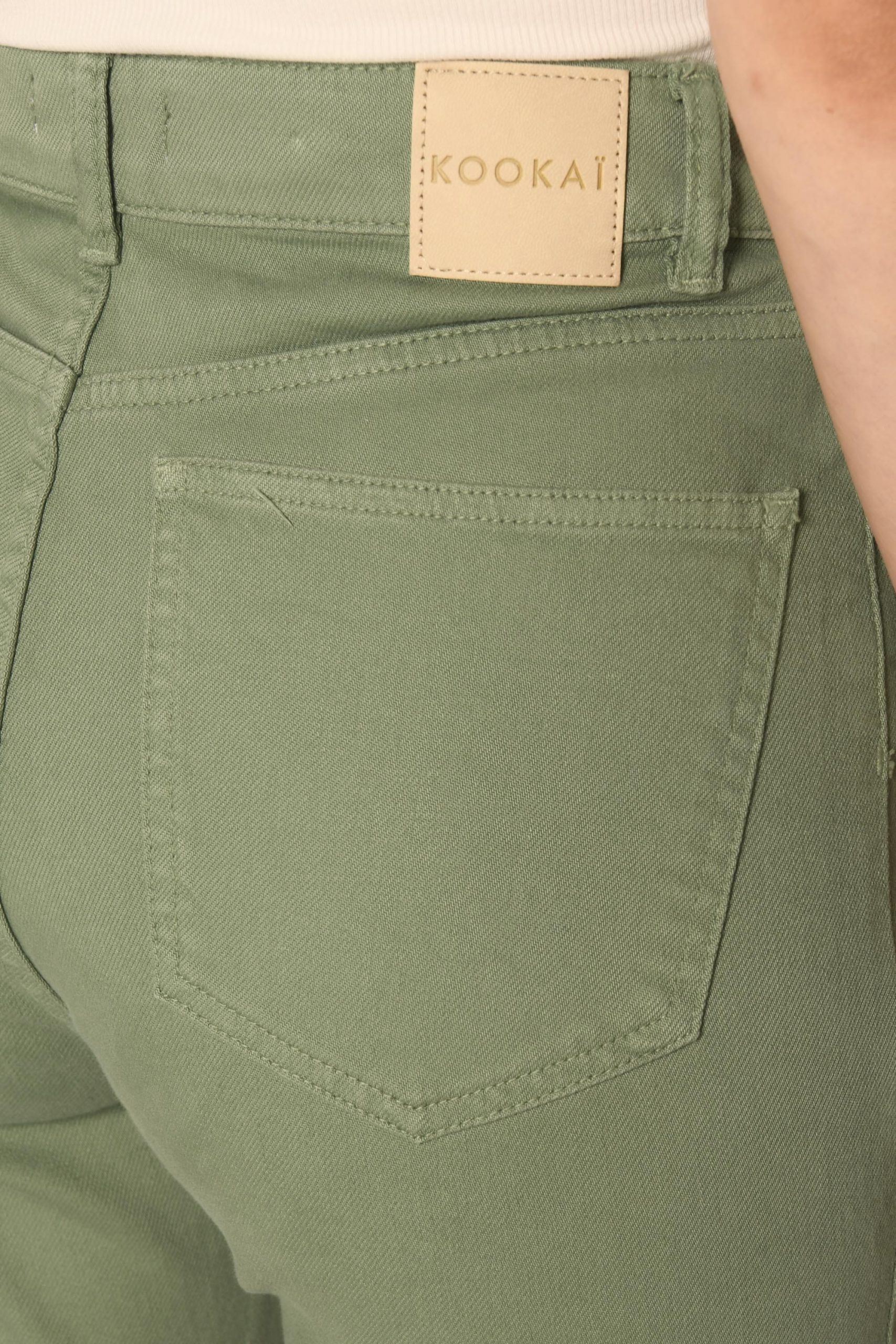 Jean cinq poches, réhausse en V au dos pour un effet galbé