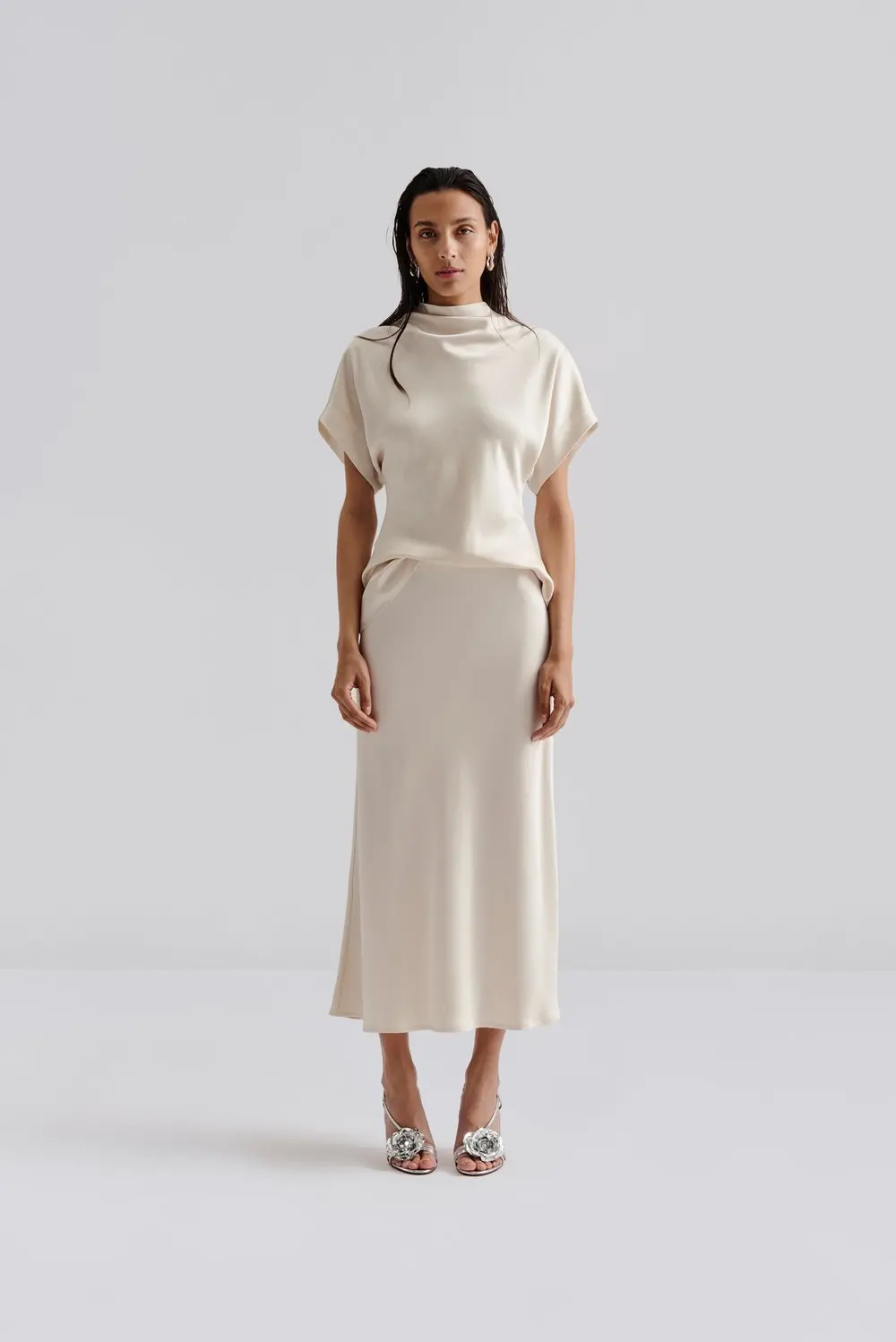 Jupe Aubree Satin Midi Vanilla