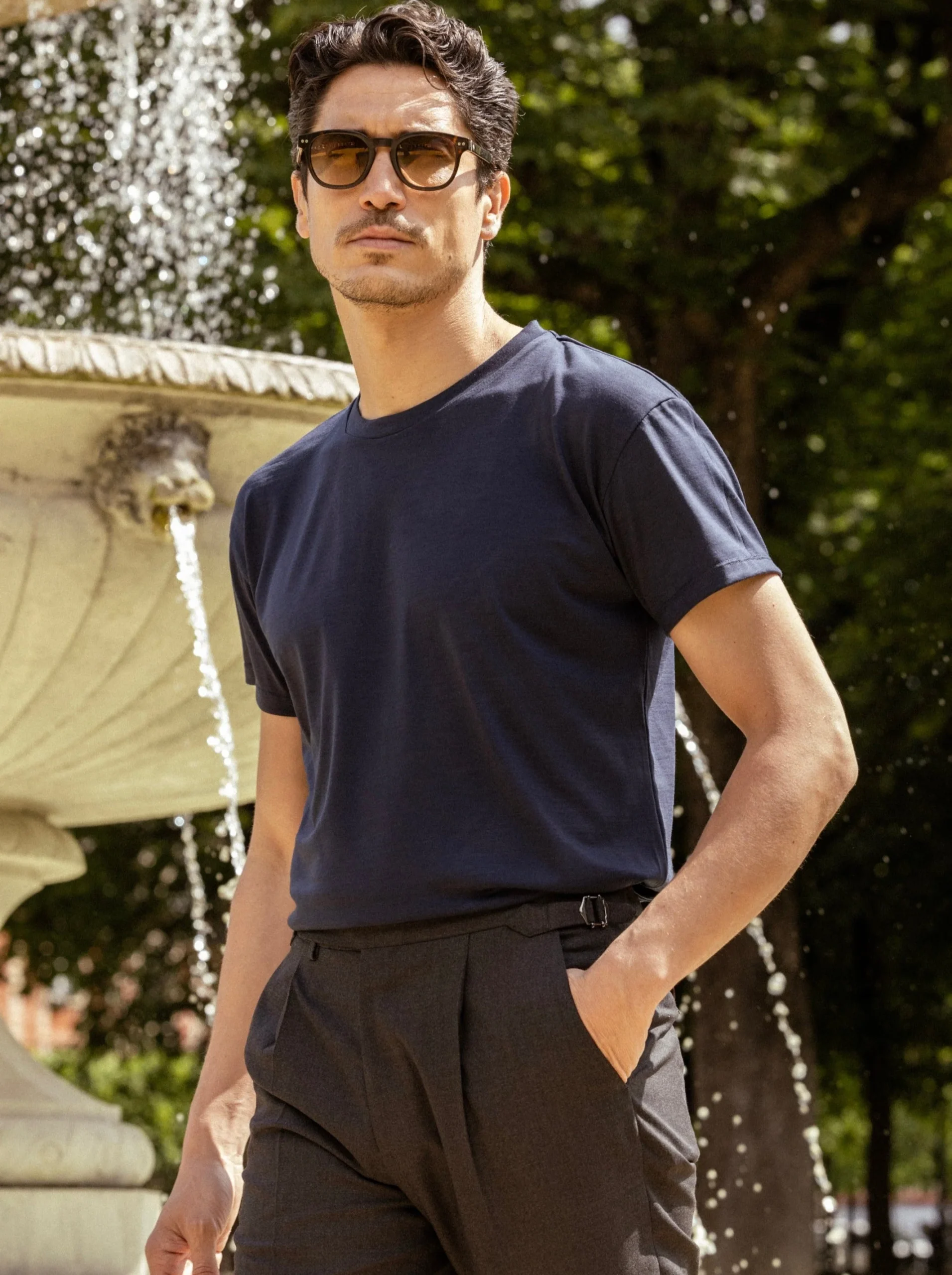 Le McQueen – t-shirt Bleu en laine merinos Super 120s