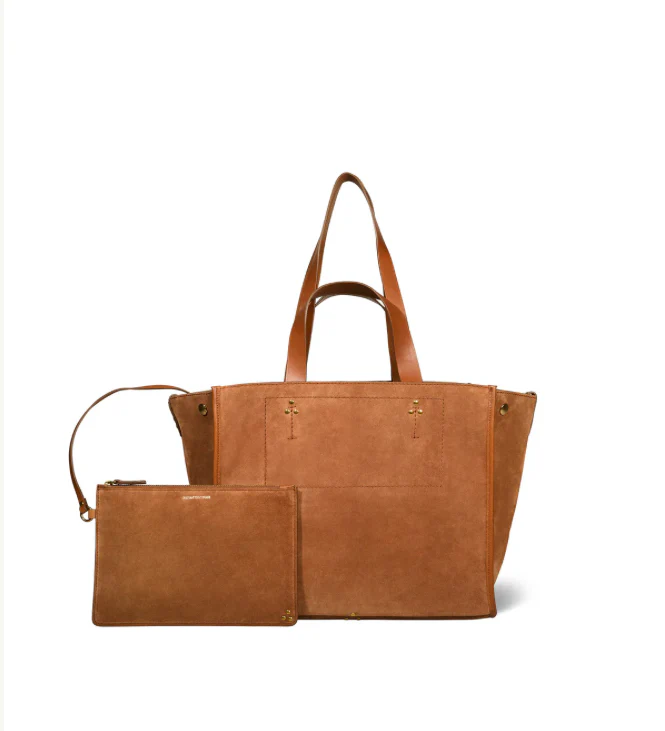 Fermeture par des pattes en cuir pressionnées. Quatre poignées, de deux longueurs, en cuir sur le haut du sac. Sac organisé avec un grand compartiment et une pochette en cuir accrochée par un lien à l’intérieur.