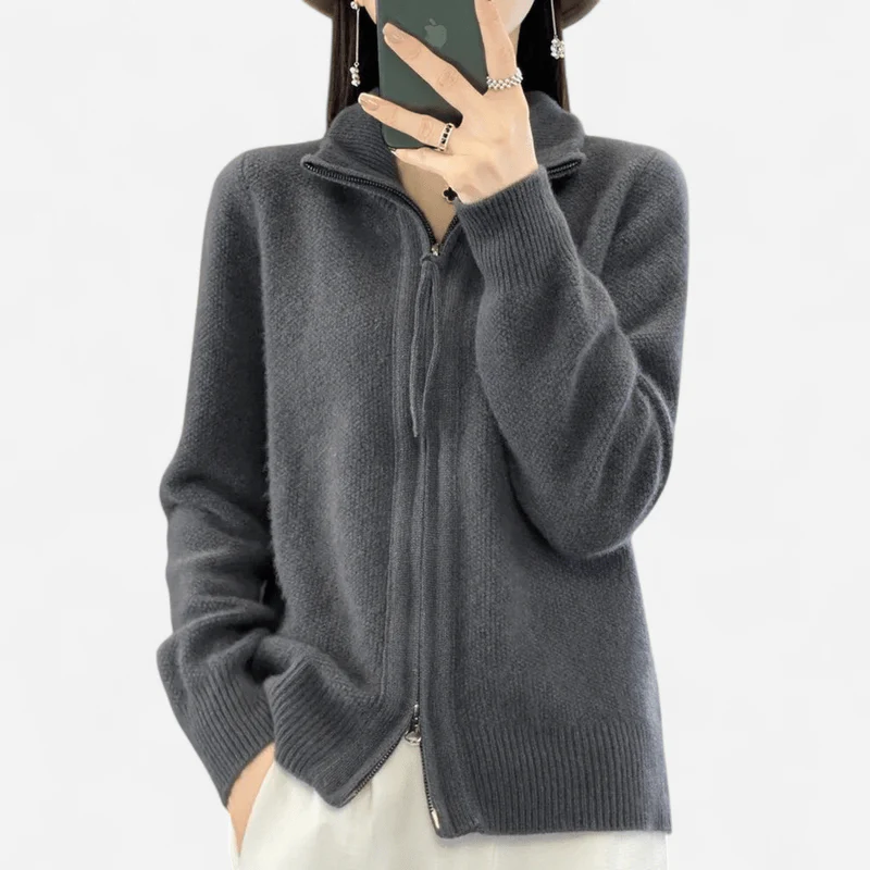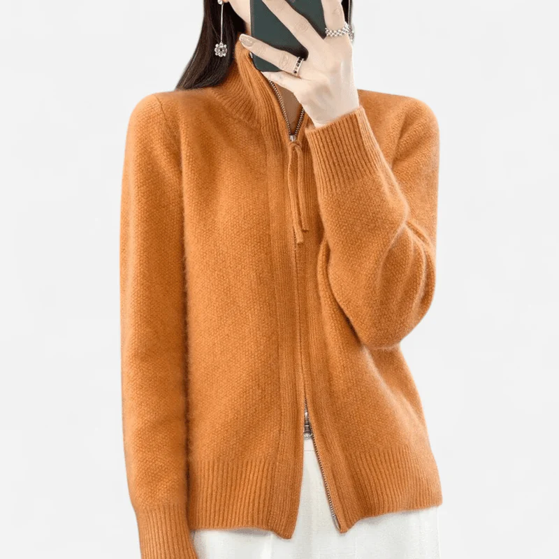 Découvrez Lila – Pull zippé en cachemire luxueux et confortable