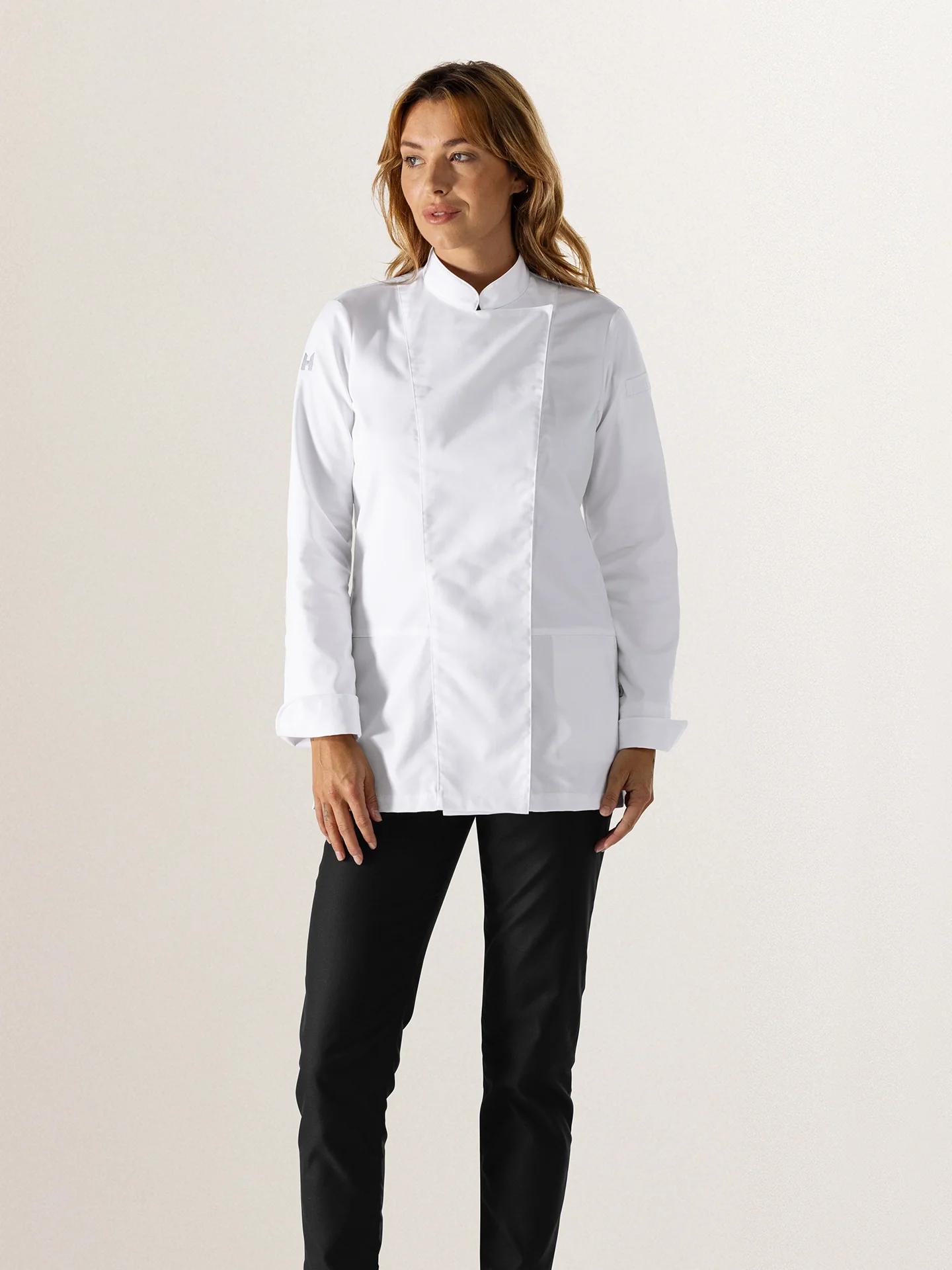 Chef Jacket Lynn is a classic chef jacket with a modern twist, high quality and a comfortable fit. Innovative excellence wrapped in a ‘classic’ product. A recent update has resulted in an even better fit, created especially for women.
