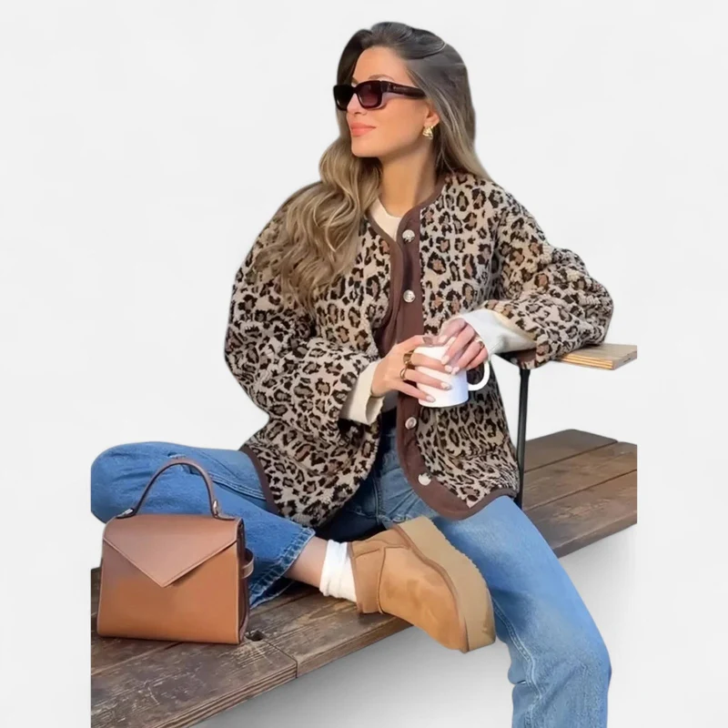Meriam – Cardigan léopard stylé en polaire douce et confortable